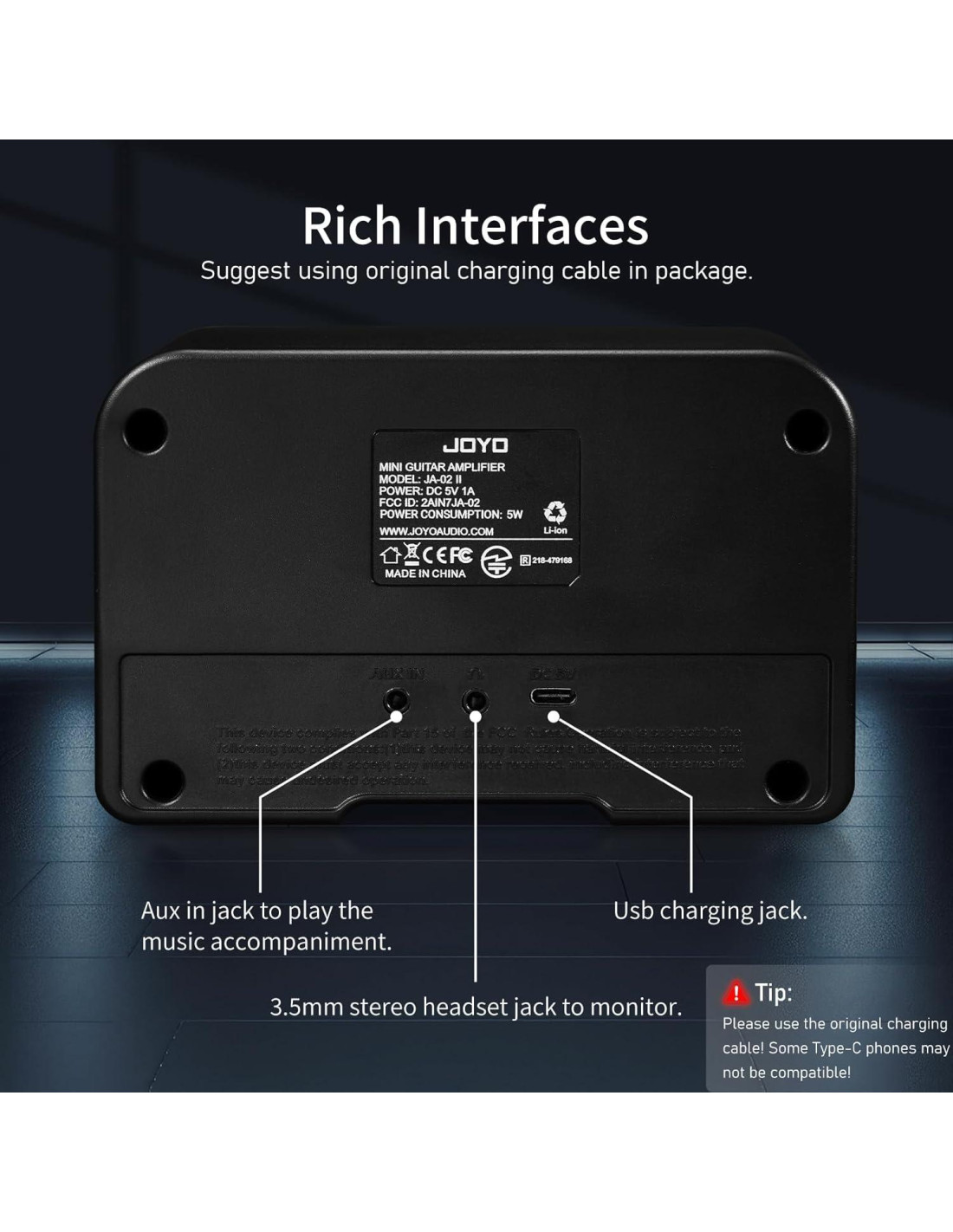 - JA-02 II es un amplificador de práctica de guitarra mini. Si hay algún problema después de recibir el paquete, puede describir el problema en cualquier momento, lo resolveré en 24 horas.
