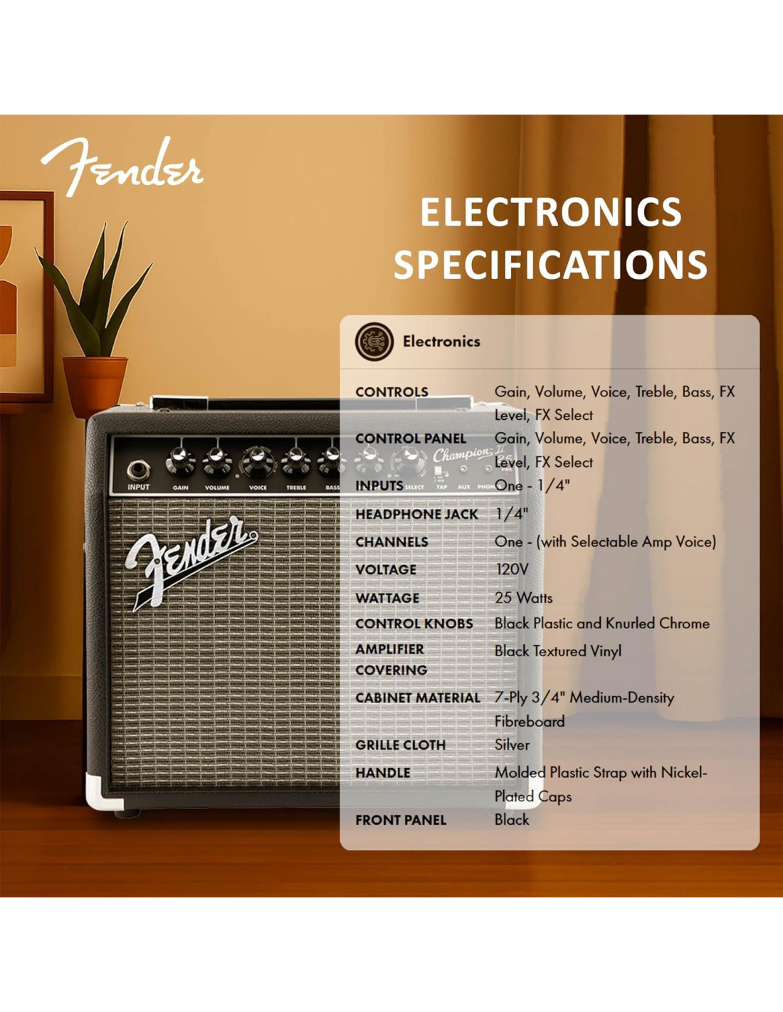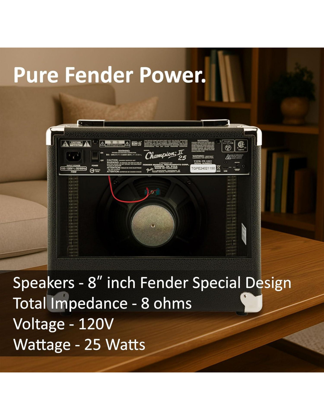 - ALTAVOZ DE CALIDAD: Fender Champion II 25 viene equipado con un altavoz Fender de Diseño Especial de 8" (20.32 cm), ofreciendo un sonido claro y equilibrado para una interpretación versátil