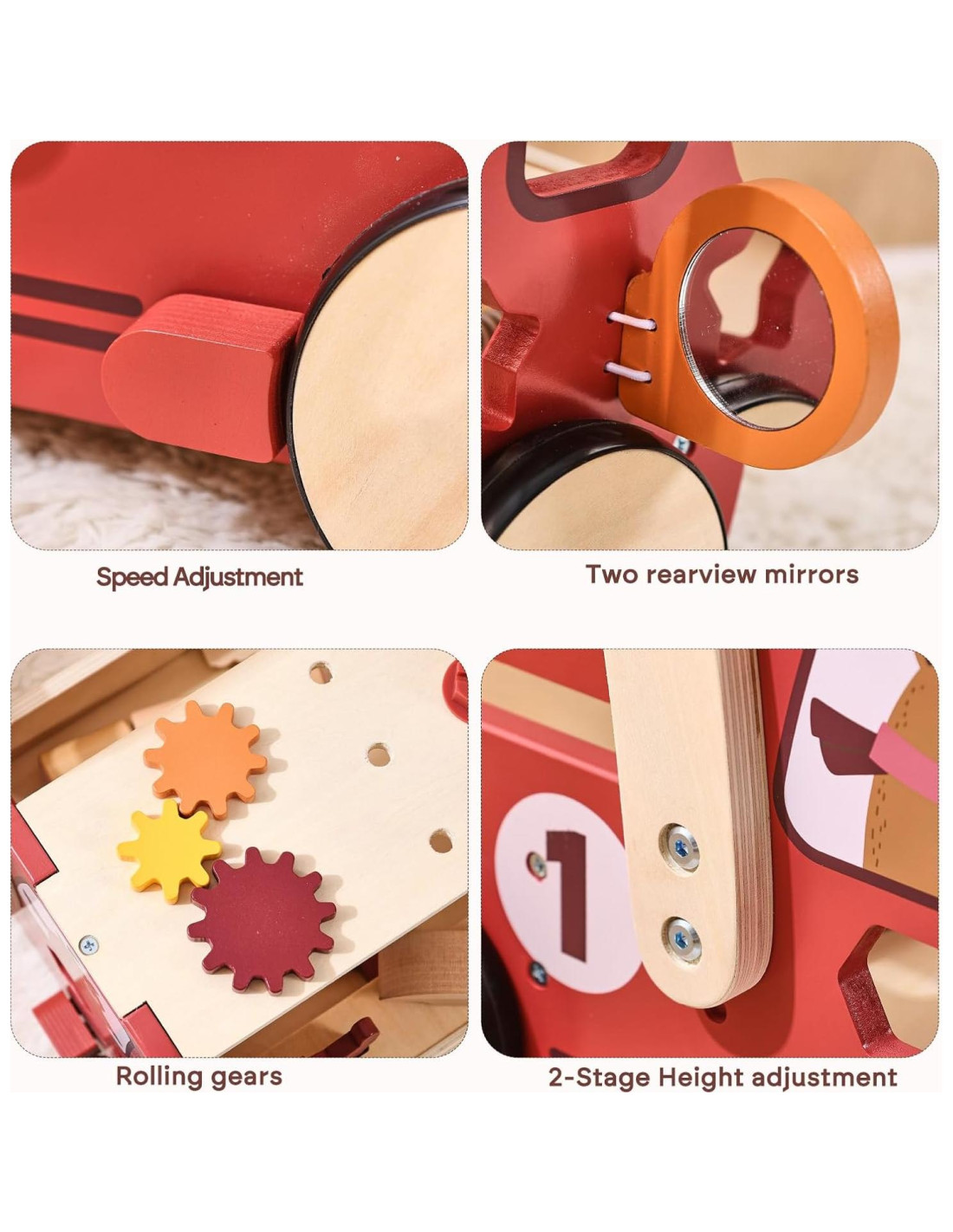 - Seguro y Cuidadosamente Hecho: Entendemos que la seguridad es lo primero para tu familia. Este juguete andador para bebés está fabricado con madera ecológica y no tóxica, con bordes suaves y ruedas de goma blanda para proteger tus pisos. Ya sea que tus hijos estén comenzando a caminar o descubriendo cómo usar herramientas, puedes confiar en este diseño robusto y seguro para apoyar su desarrollo.