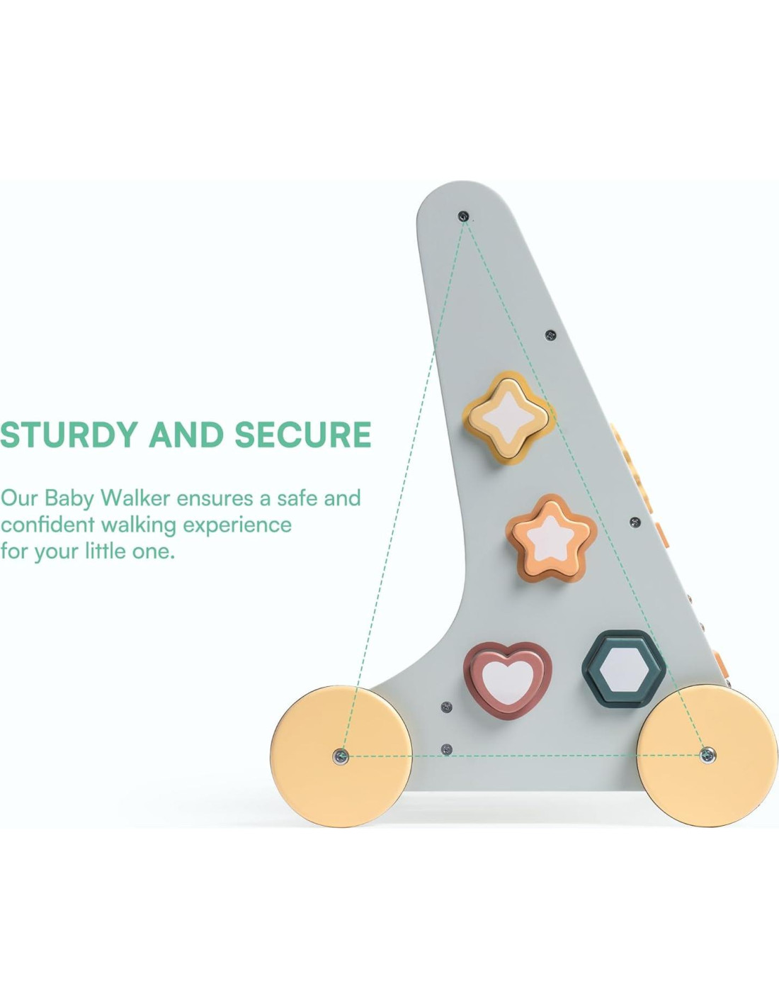 - Prevención de piernas en O: A medida que tu bebé da sus primeros pasos, los andadores de madera para bebés también juegan un papel crucial en el fortalecimiento de sus pequeñas piernas y en la prevención del desarrollo de piernas en O, asegurando un paso seguro para su futuro.
