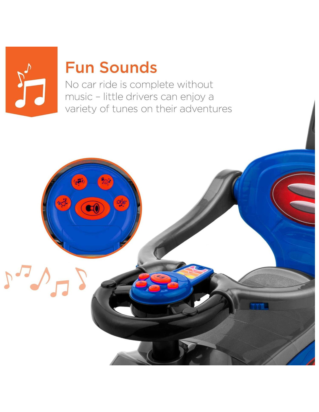 - SONIDOS INTERACTIVOS: El volante está equipado con botones para que tu hijo pueda tocar el claxon o seleccionar una variedad de melodías durante su paseo