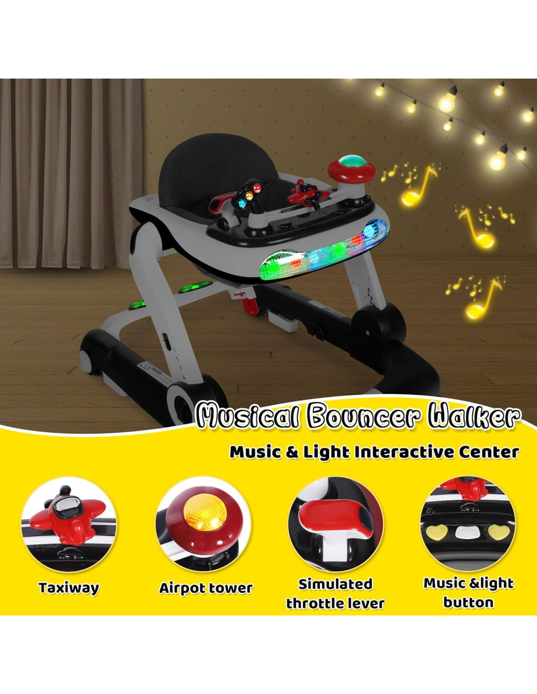 - Modo Multifuncional: 1. Andador sentado para aprender: ejercitar el equilibrio; 2. Andador de pie: fortalecer los músculos de las piernas; 3. Balancín con música: proporciona formas de entretenimiento; 4. Andador con música: mejora el interés; 5. Modo de comedor: bandeja para bocadillos; 6. Juguetes musicales desmontables