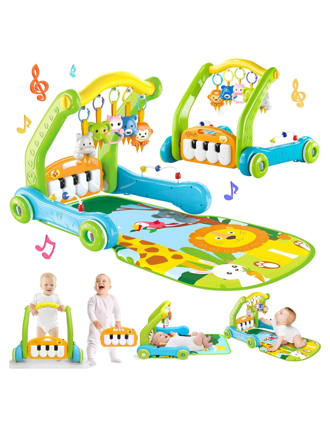 - Alfombra de Juego para Bebés 4 en 1: Tiempo boca abajo, aprender a gatear, sentarse y jugar, aprender a caminar, este versátil andador para bebés con ruedas puede crecer con tu bebé, desde recién nacido hasta niño pequeño, ¡le encantará esta alfombra para el suelo! El mango superior se puede ajustar en altura para adaptarse a bebés de diferentes alturas. Hay pasos de instalación en el lado de la caja de regalo y en la página de detalles A+, para tu referencia.
