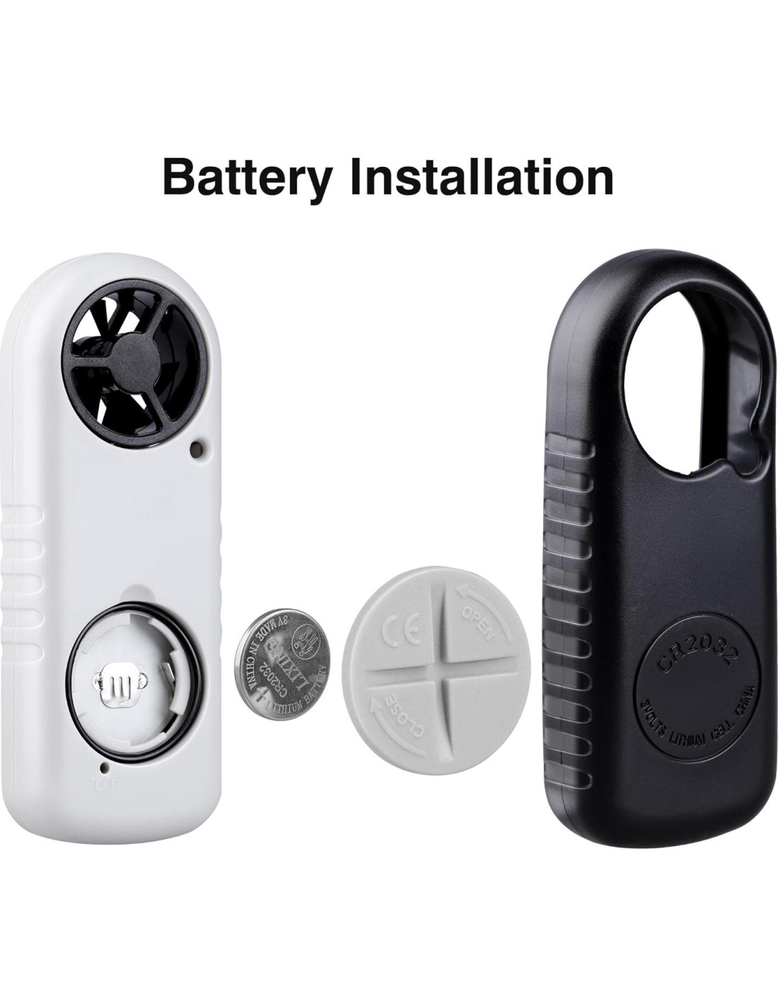 - FÁCIL DE USAR - Retire la cubierta protectora de goma del medidor de velocidad del viento, luego abra la puerta de la batería, es más fácil que otros medidores de viento. Coloque una batería CR2032 (incluida), encienda el anemómetro de velocidad del viento presionando 'Modo' durante 2s para medir el viento y analizar el entorno para realizar actividades.