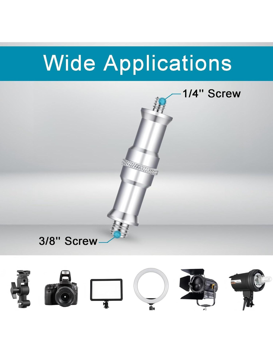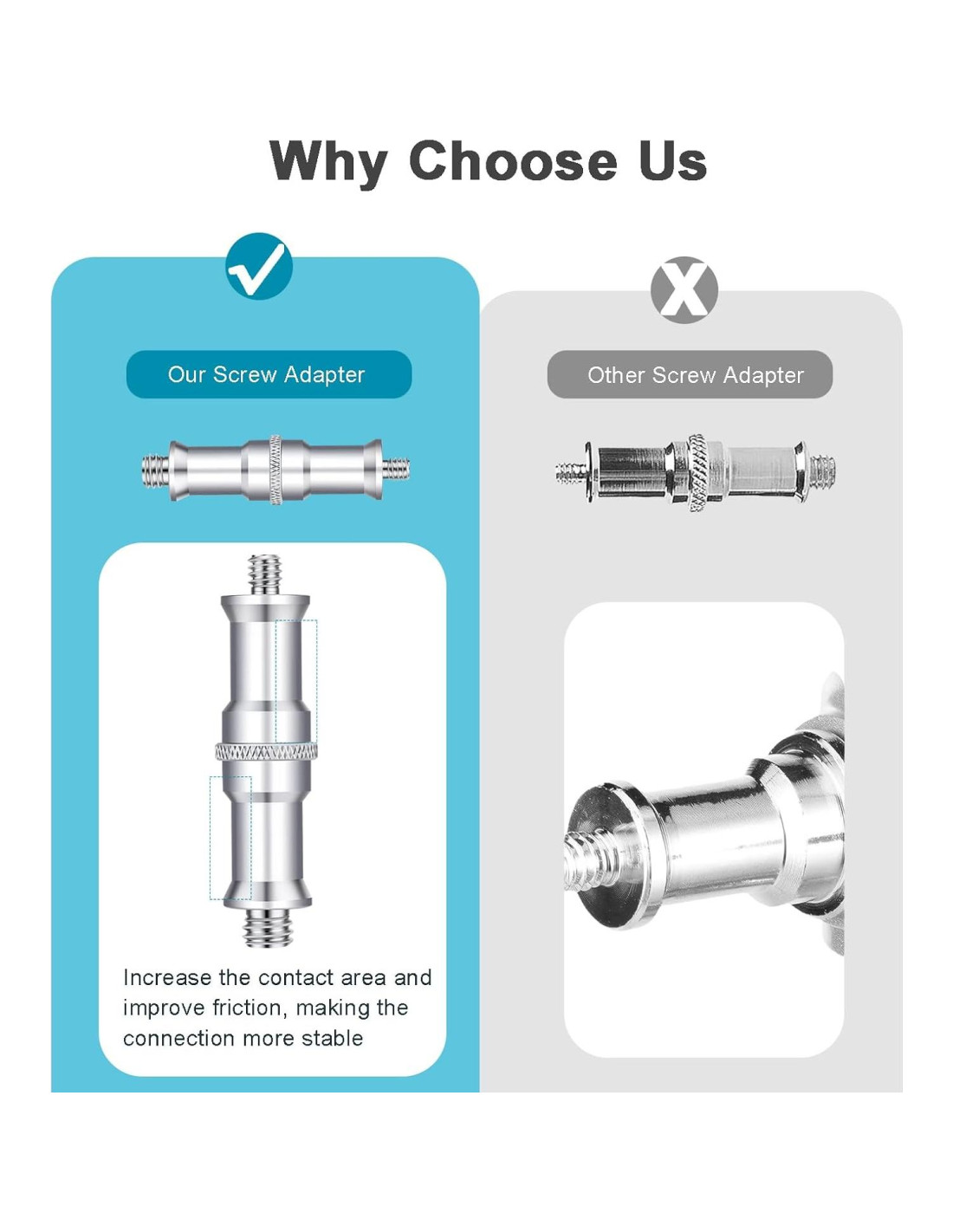 - Compatibilidad versátil: Estos adaptadores de tornillo para cabezales de trípode están diseñados para una amplia gama de aplicaciones, incluyendo lámparas fotoflood, soportes de cámara, soportes de luz de estudio y más. Compactos y ligeros, son fáciles de almacenar en tu bolsa de cámara o caja de herramientas, lo que los hace perfectos para fotógrafos y videógrafos en movimiento.