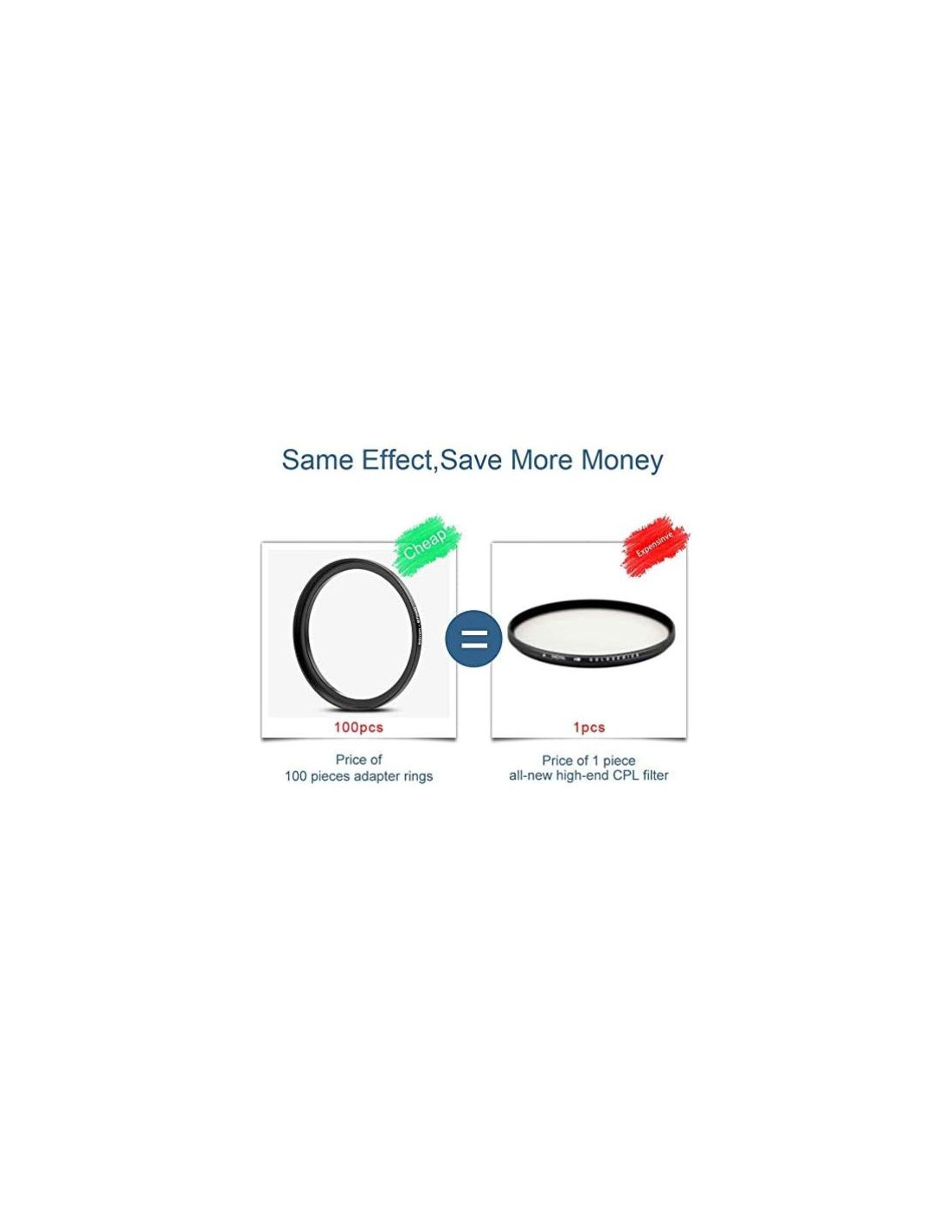 - Incluye anillo adaptador de filtro de paso a abajo 37-30mm (1.46-1.18 pulgadas) 49-37mm (1.93-1.46 pulgadas) 52-49mm (2.05-1.93 pulgadas) 55-52mm (2.17-2.05 pulgadas) 58-55mm (2.28-2.17 pulgadas) 62-58mm (2.44-2.28 pulgadas) 67-62mm (2.64-2.44 pulgadas) 72-67mm (2.83-2.64 pulgadas) 77-72mm (3.03-2.83 pulgadas) 82-77mm (3.23-3.03 pulgadas).
