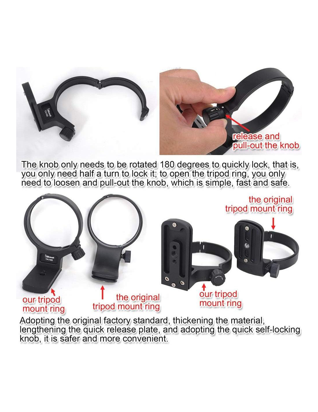 - 5. El paquete incluye: 1 x Anillo de Montaje en Trípode iShoot IS-TA140 para Lente Tamron 100-400mm f/4.5-6.3 Di VC USD(A035) (Nota: Los otros artículos en las fotos no listados aquí son solo para ilustrar, no incluidos)