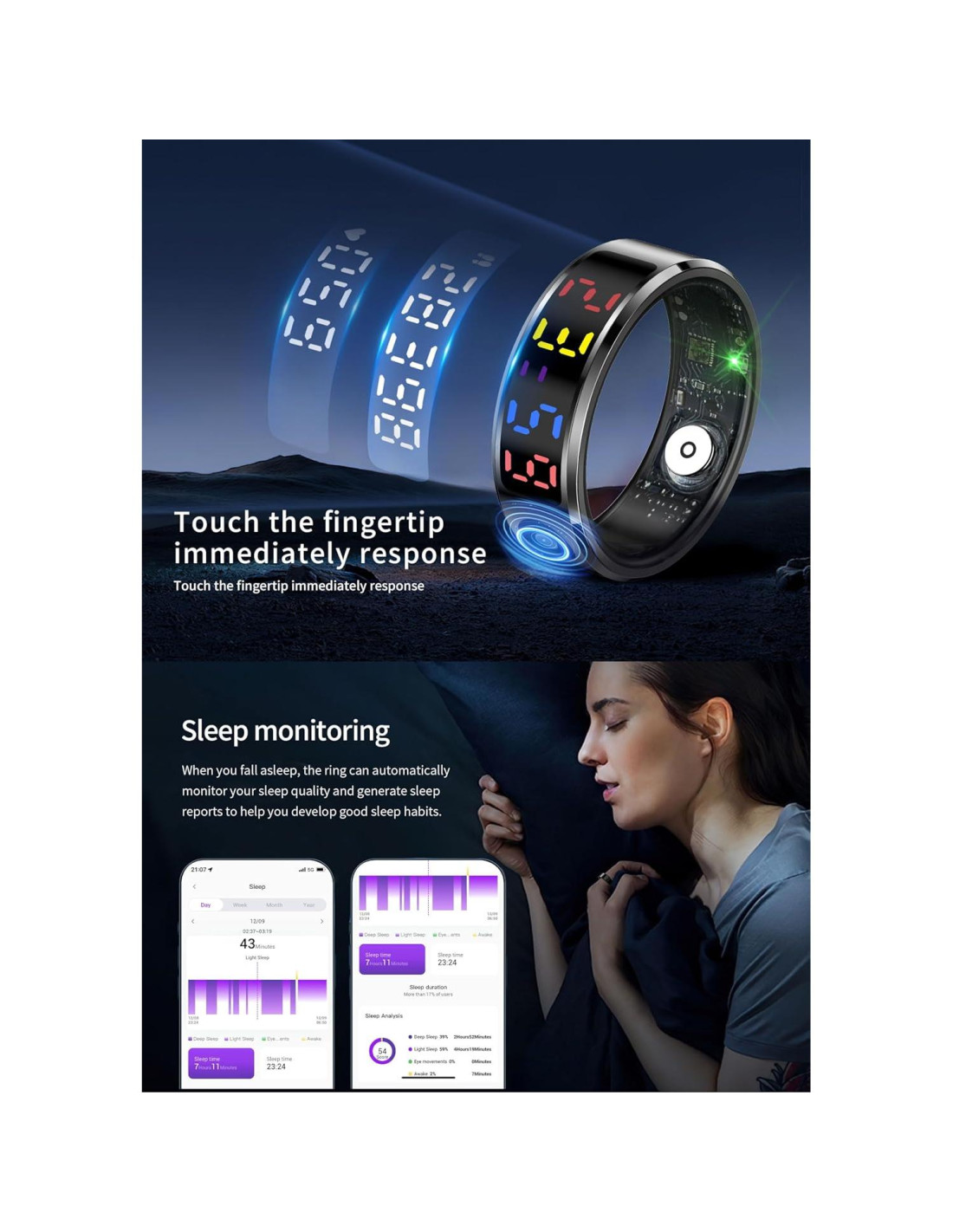 - [Compañero deportivo todoterreno] El diseño impermeable 5ATM asegura que el anillo sea adecuado para múltiples escenarios, y al mismo tiempo, tiene la función de detección automática de múltiples deportes como correr/yoga y ciclismo y grabación de conteo de pasos en tiempo real.