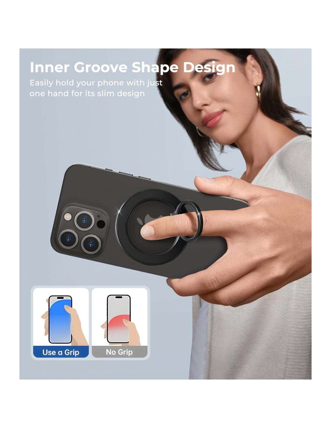 - [Perfecto para iPhone MagSafe] Este agarre para teléfono MagSafe puede fijarse a iPhone 15, 15 Plus, 15 Pro, 15 Pro Max, todos los modelos de iPhone 14, 13 y 12, fundas magsafe sin ningún accesorio. Este soporte magsafe puede fijarse directamente a la serie iPhone o fundas magnéticas MagSafe. El imán será más fuerte si se usa el anillo de metal.