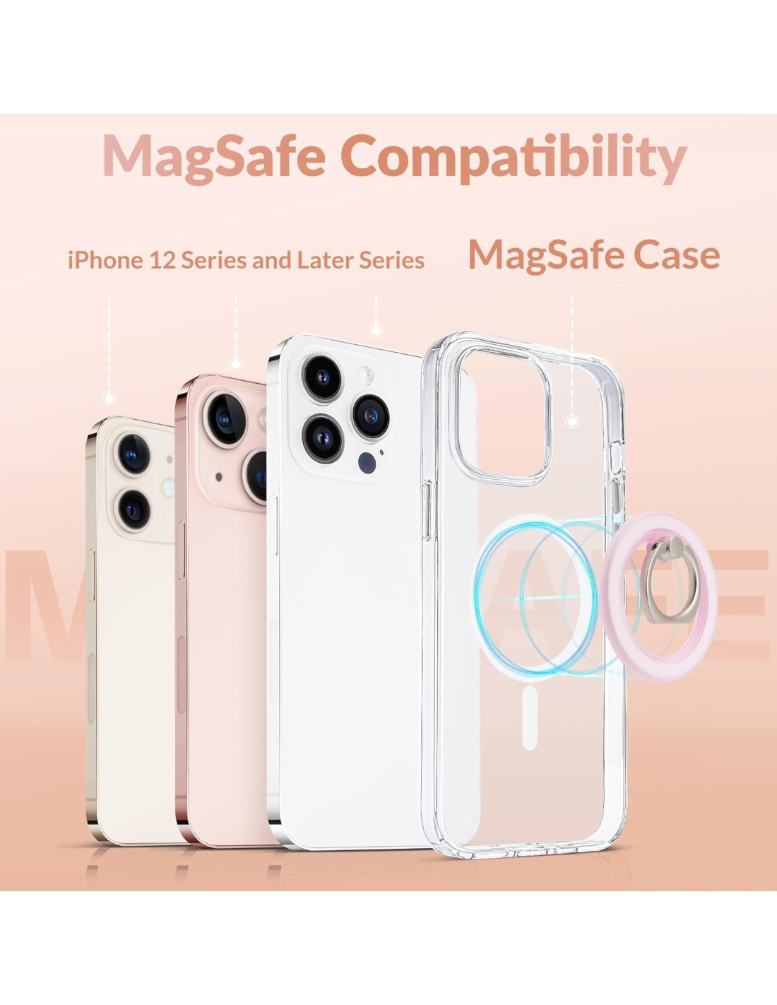 - Compatible con accesorios de carga inalámbrica MagSafe, simplemente desliza el soporte magnético para teléfono para cargar tu teléfono de forma inalámbrica (cuando lo desees)