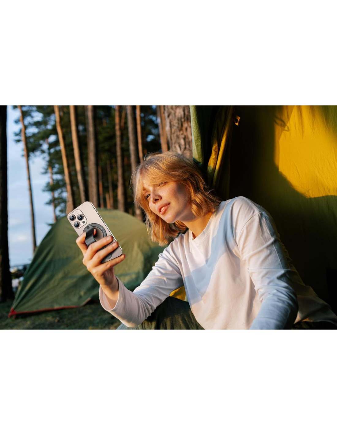 - El agarre magnético Gripmate, hecho de silicona amigable con la piel, se coloca y se quita fácilmente de tu soporte de bucle para teléfono Mag Safe para un impulso inalámbrico.