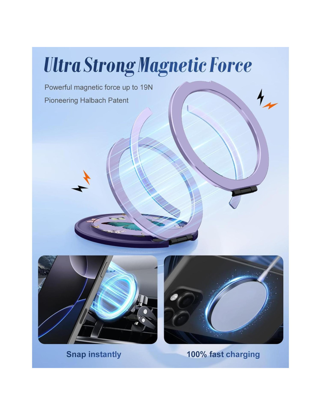 - Anillo Magnético de Metal: La capacidad magnética del anillo de metal del soporte para teléfono se conecta perfectamente con el soporte para automóvil de tu teléfono e integra sin problemas con una variedad de dispositivos de carga inalámbrica. NOTA: El soporte de anillo debe pegarse en el centro de la parte magnética del teléfono, de lo contrario afectará la carga inalámbrica, y la función de carga inalámbrica no está disponible para fundas de teléfono de silicona, fundas de teléfono de cuero y otros teléfonos sin anillos magnéticos.