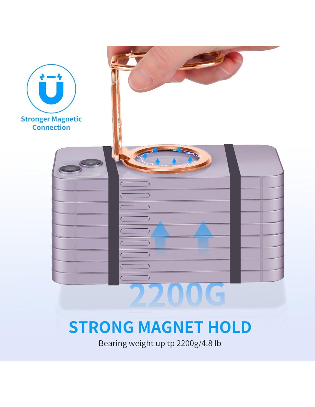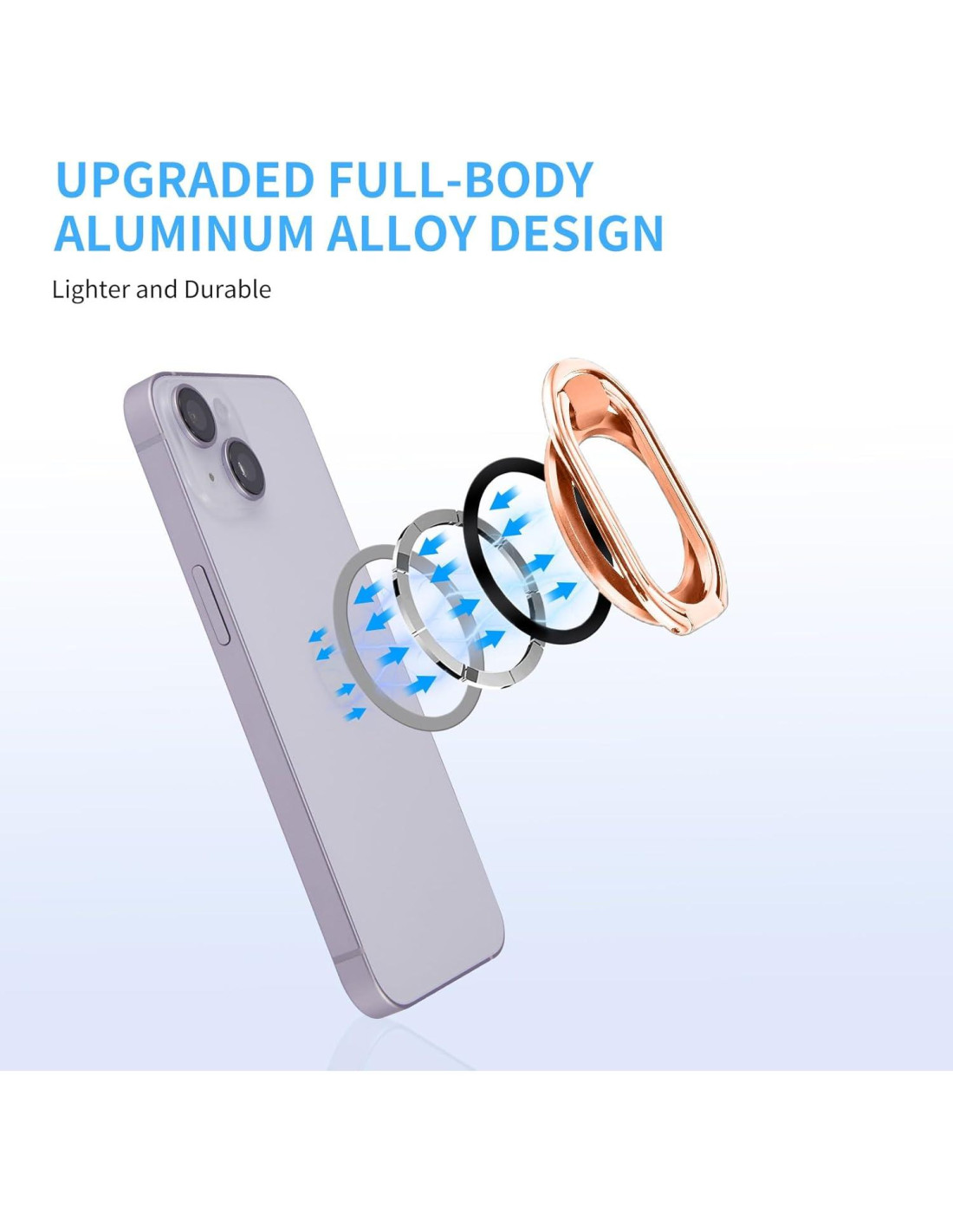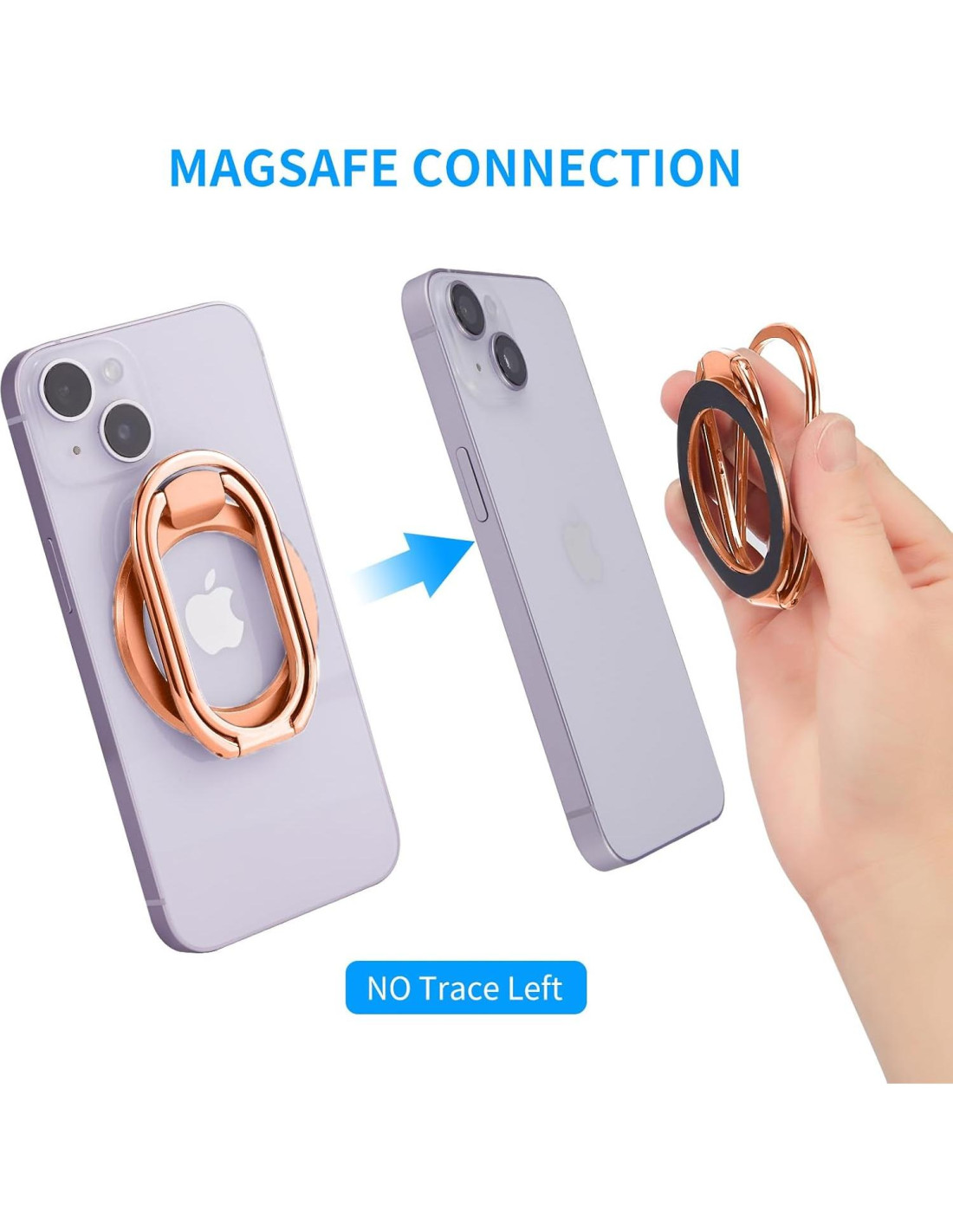 - [Amplia Compatibilidad] Este soporte magnético para teléfono se puede acoplar directamente a la serie iPhone 16/15/14/13/12 y fundas para teléfonos MagSafe. Para otros teléfonos inteligentes o fundas para teléfonos no MagSafe, debes usar el anillo metálico. Usar el anillo metálico también hará que el imán sea más fuerte. Nota: Después de adjuntar el anillo metálico, por favor espera 24 horas para usar el soporte de anillo para teléfono MagSafe