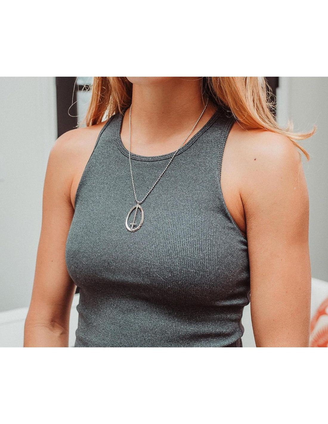 - Dimensiones del producto: Atractivo collar de metal base plateado que presenta un colgante de 2 pulgadas (5,08 cm). La cadena de bolas de alta calidad mide aproximadamente 18 pulgadas (45,72 cm) de largo y viene con una cadena extensora de 2 pulgadas (5,08 cm).