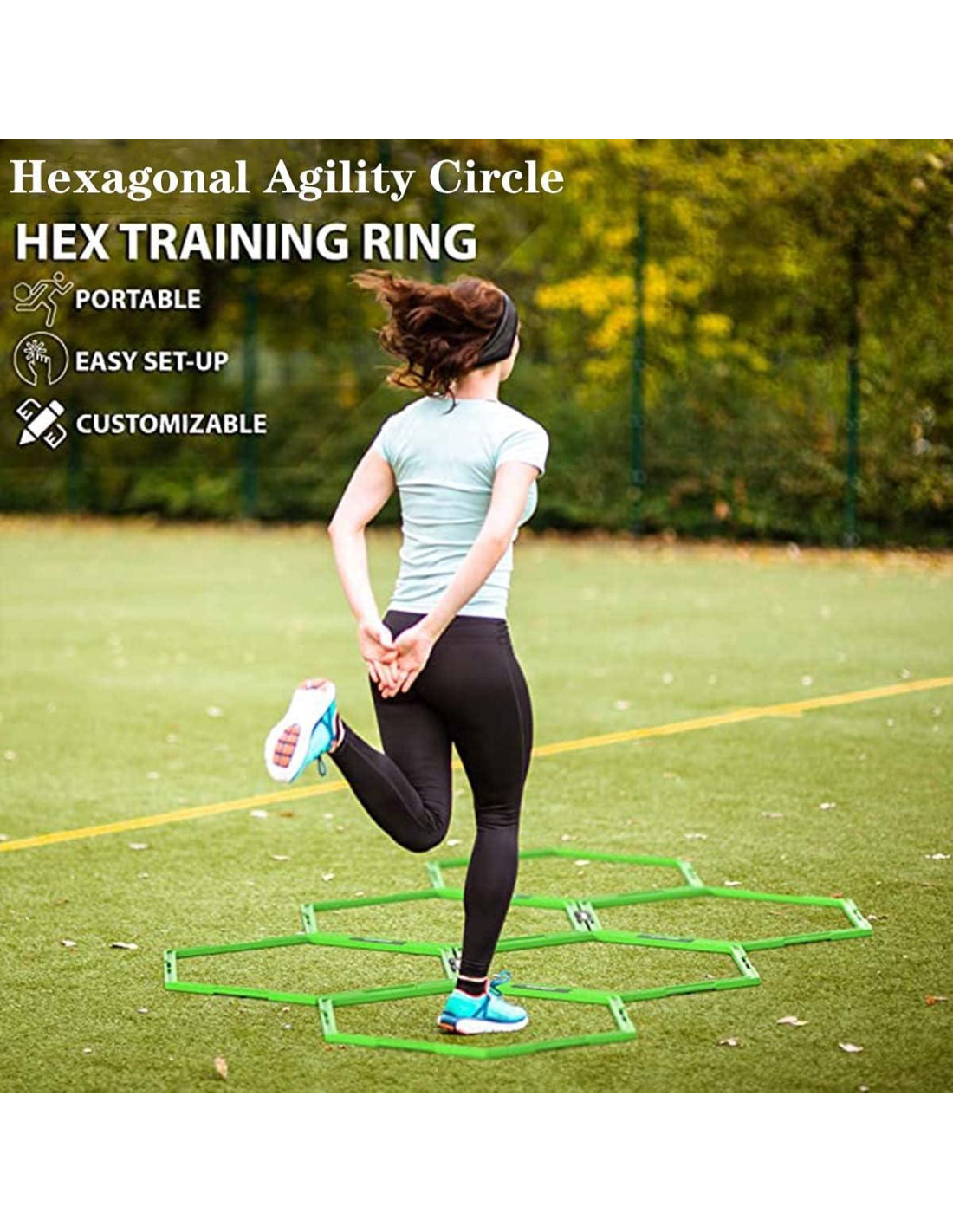 - [Mejorar el equilibrio de velocidad:] El anillo de entrenamiento hexagonal ágil te permite mejorar la eficiencia de velocidad y la fuerza de las piernas, habilidades centrales, equilibrio, ritmo y control del cuerpo durante el ejercicio.