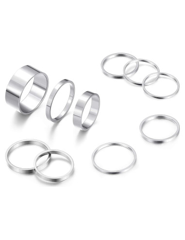 - MULTI-TAMAÑO DE ANILLO PARA DEDO: Incluye 10 Pcs de anillos simples y te proporciona 7 tamaños para adaptarse a tus diferentes dedos para apilar y crear looks geniales. Son muy ligeros pero resistentes, y no se desgastan ni rompen fácilmente.