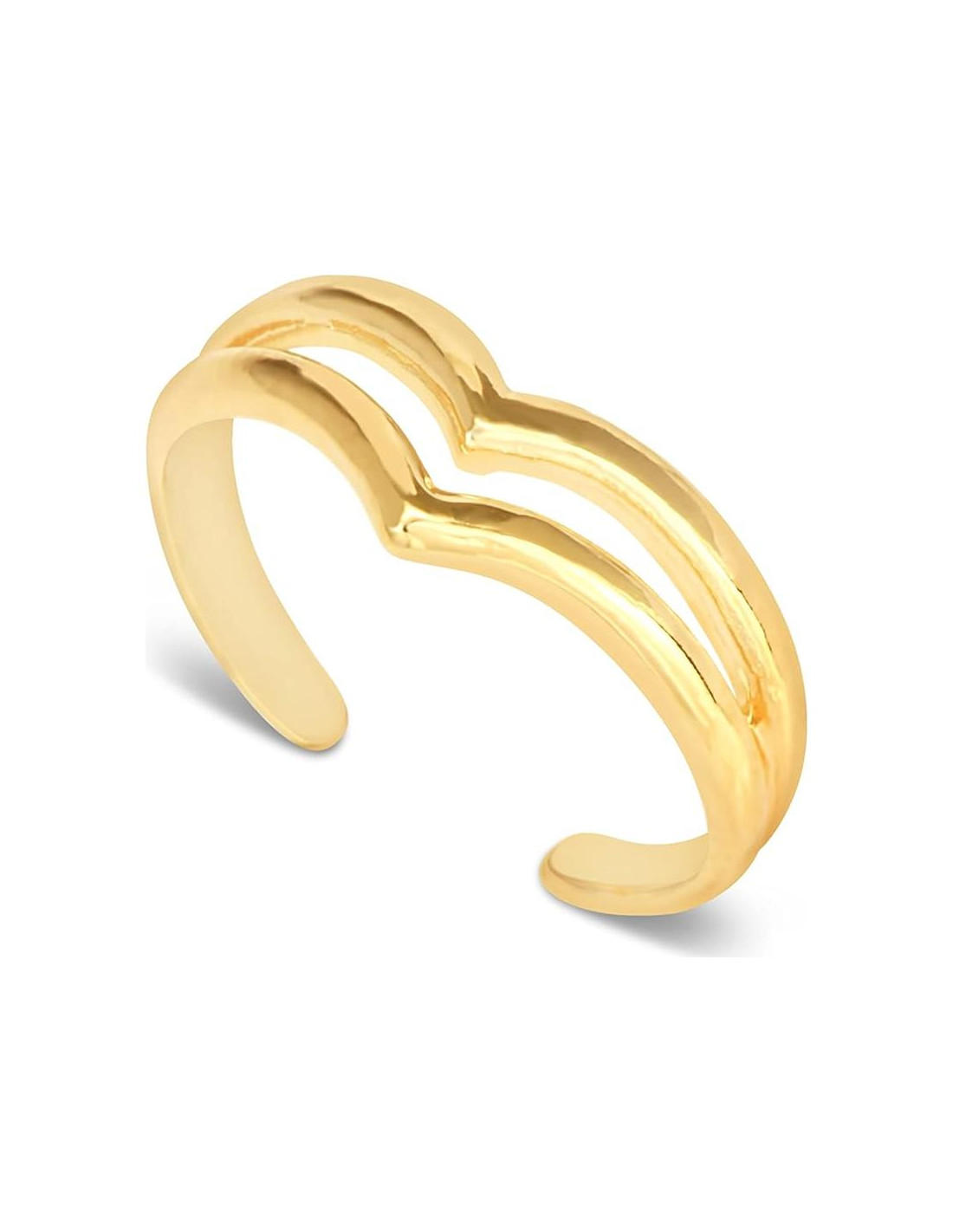 Diseñado con dos bandas crea un aspecto sofisticado perfecto en todo momento. Este notable anillo es impresionante y muy genial. Es muy cómodo ya que puedes ajustar fácilmente el tamaño del anillo. Se ajustará a tus dedos y permanecerá allí sin que lo notes. Este anillo es delicado pero fuerte, duradero y robusto. De forma simple pero elegante, es notable y añade un estilo especial a tus sandalias, arte en las uñas y preferencias de moda en general. Este anillo es el regalo perfecto para ti y/o tus seres queridos.