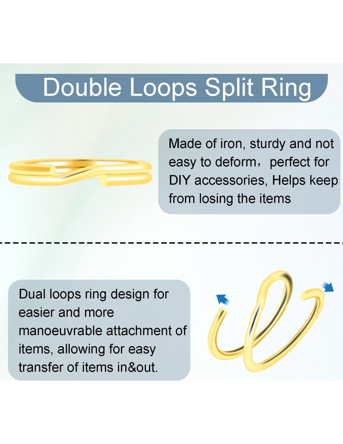 - Material: Los Anillos Clave Divididos están hechos de Hierro, duraderos y de larga duración. Livianos y fáciles de usar. El diseño de anillo de doble capa se puede usar sin usar alicates, el doble anillo de cada anillo se cierra firmemente y está conectado de manera ajustada, hay suficiente tensión para mover fácilmente los artículos dentro y fuera sin deformación