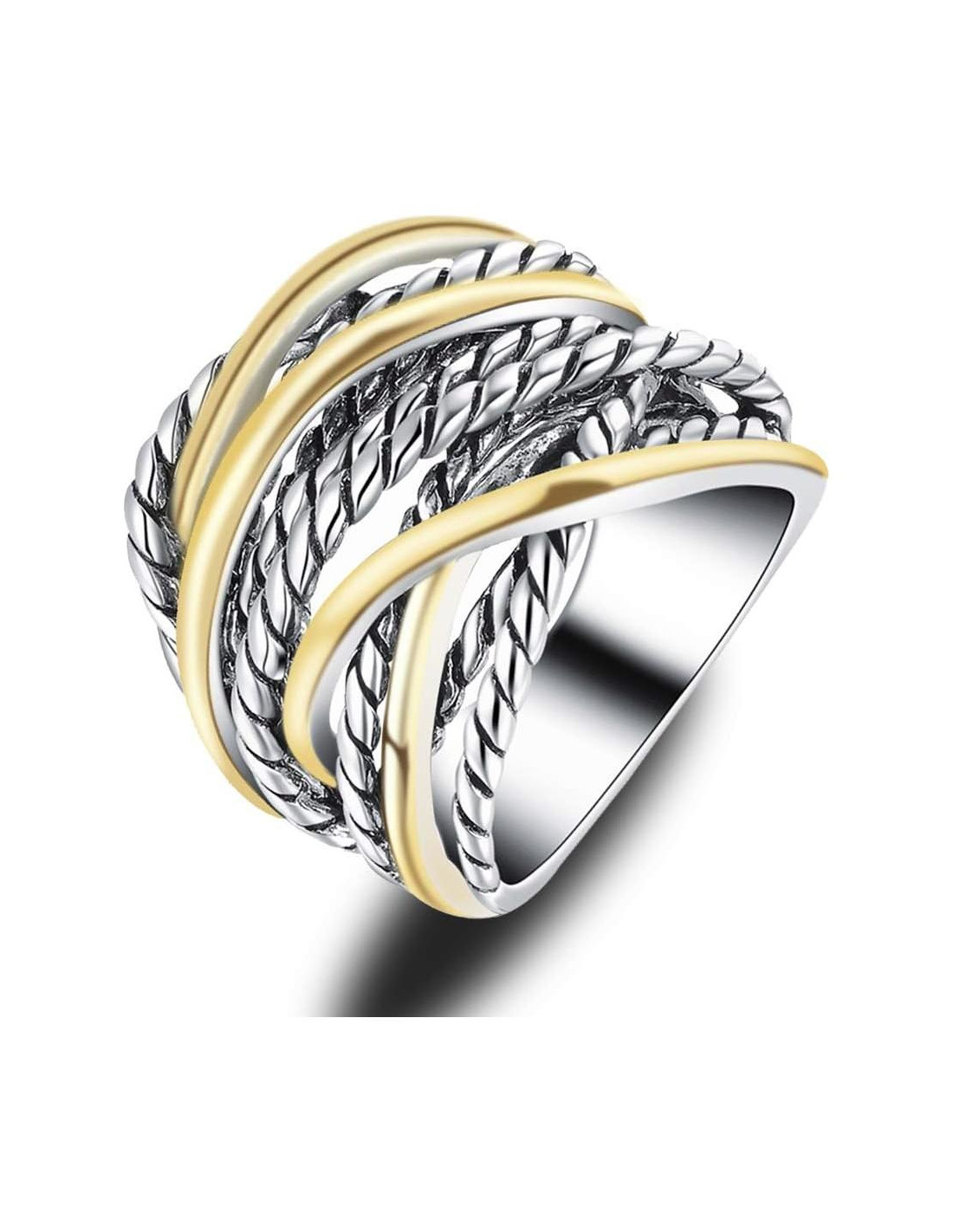- Anillo de cóctel diseño de cable plateado retro: Este anillo de cóctel presenta un diseño de cable plateado retro, añadiendo un toque de encanto vintage. Es perfecto para varias ocasiones y puede considerarse como joyería de disfraz