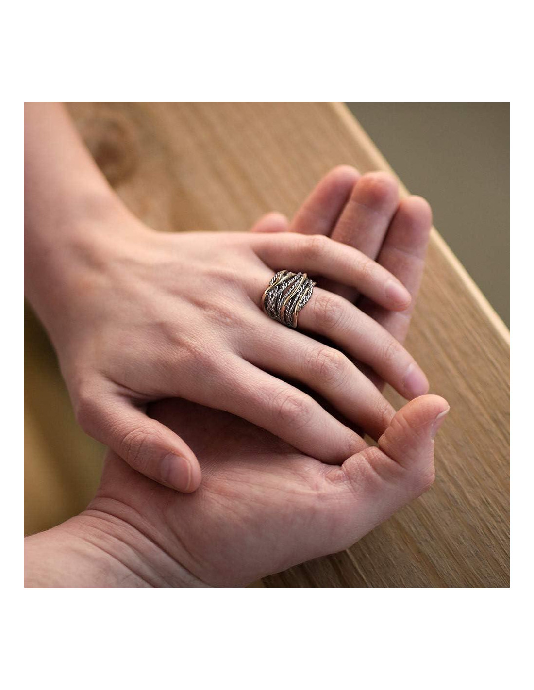 - Anillo de declaración elegante de 2 tonos para mujeres: Este anillo de dos tonos en oro y plata añade un toque elegante y gracioso a cualquier ocasión especial. Es un gran regalo para tu familia o amigos y viene en una exquisita caja de joyería de terciopelo