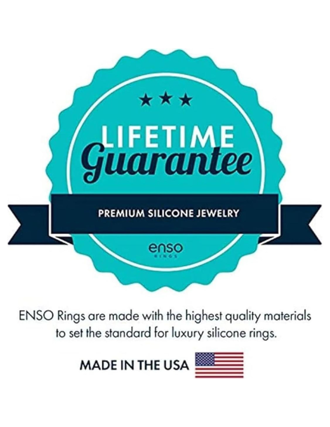 - Garantía de por vida: Cada anillo Enso viene con una garantía de por vida. Si tu anillo se rompe, se estira o se desvanece, lo reemplazaremos durante la vida del comprador.