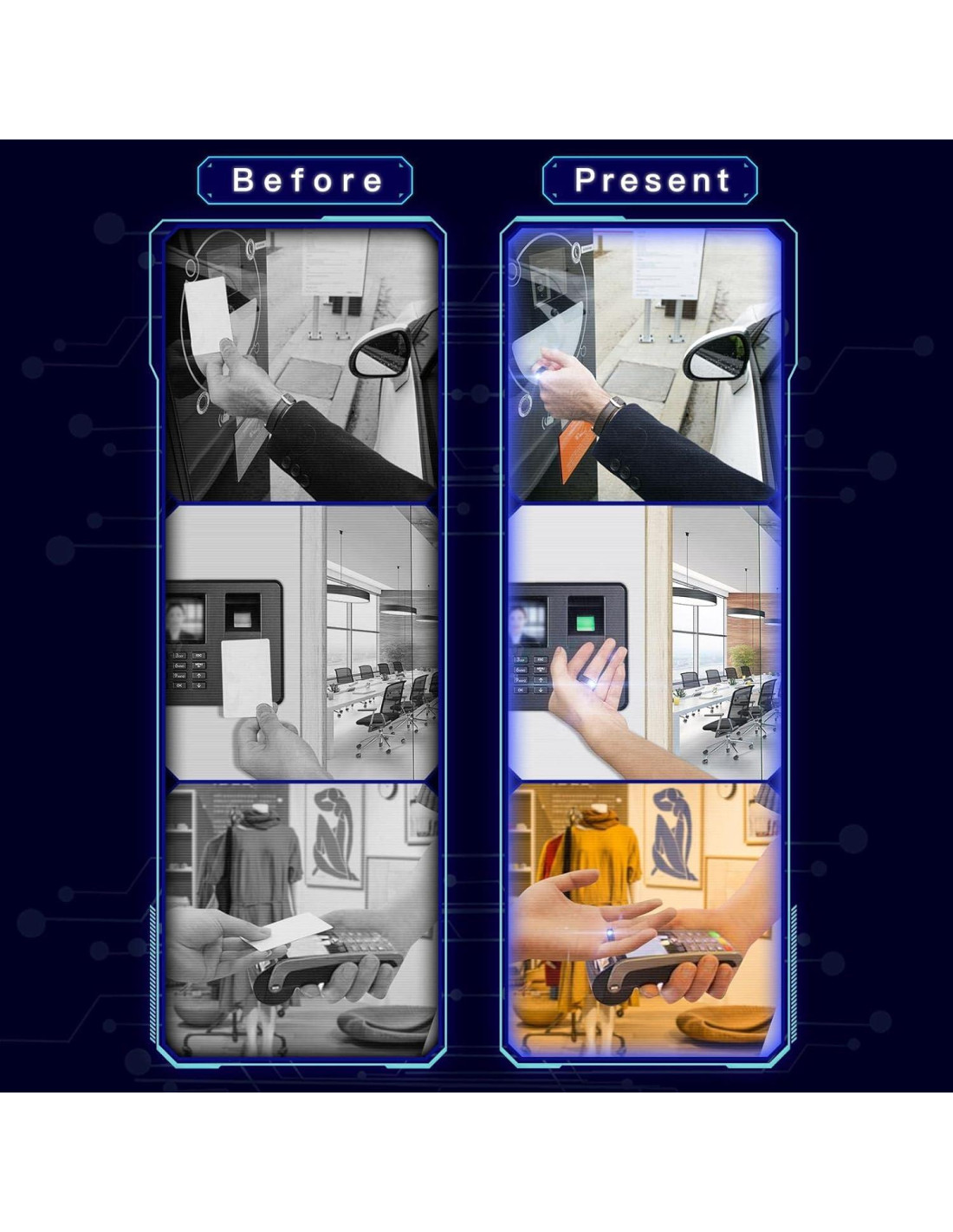 - El Anillo R5 puede ser 2 tarjetas IC (13.56MHZ), 2 tarjetas ID (125KHZ) y 2 tarjetas NFC al mismo tiempo, como tarjeta de control de acceso, tarjeta de torniquete, tarjeta de elevador, tarjeta de estacionamiento, tarjeta de tiempo, tarjetas de supermercado, tarjetas de gas, tarjetas médicas, etc;