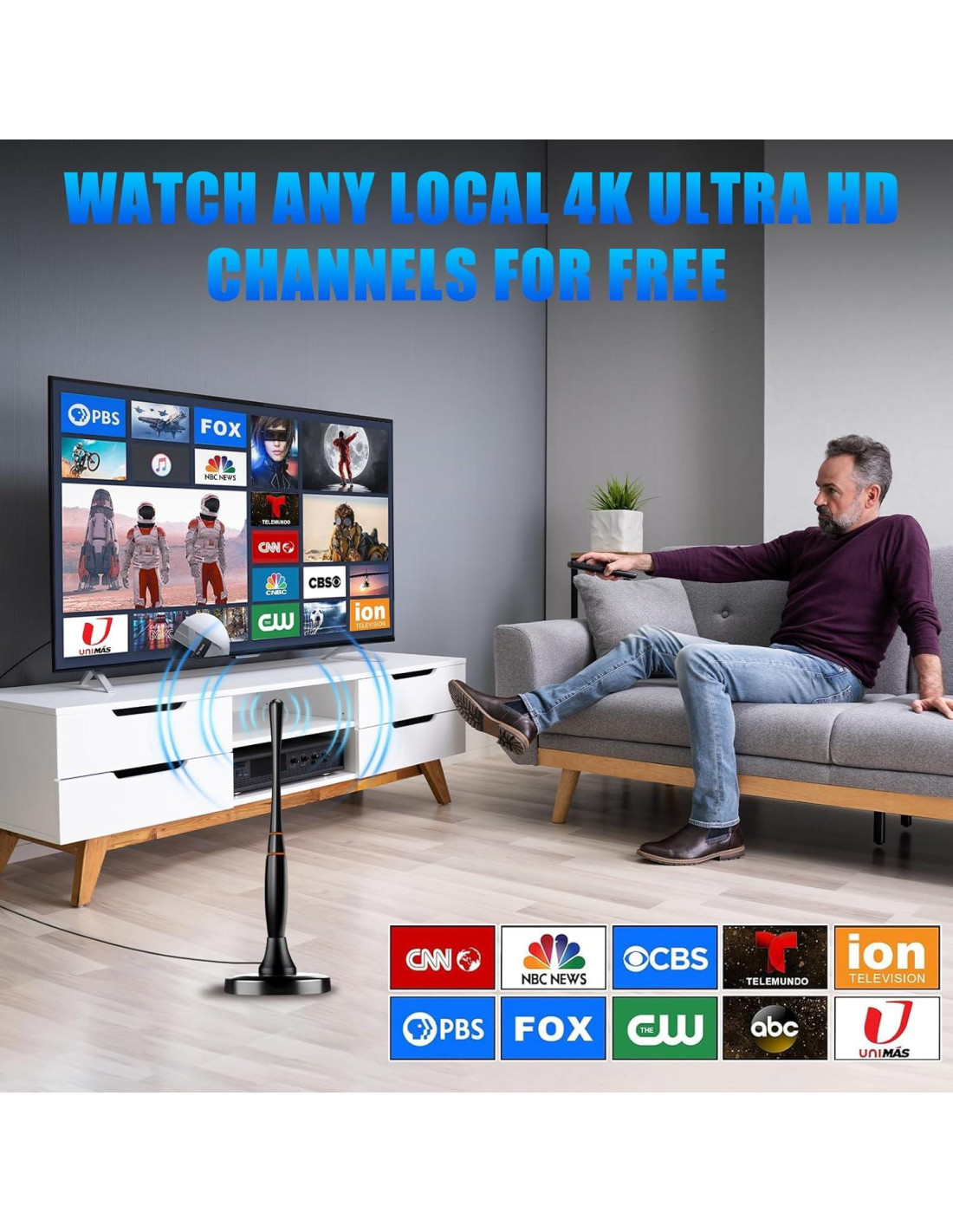 - Canales Full HD 4K: Con nuestra antena de TV mejorada, ya no necesitas pagar esas tarifas de TV por cable. Como una necesidad de la vida, puedes disfrutar de una suave televisión de alta definición 4K, que puede recibir muchos canales, como PBC, ABC, Fox, CBS, NBC, etc., y también soporta 4K 1080 y otros formatos digitales.