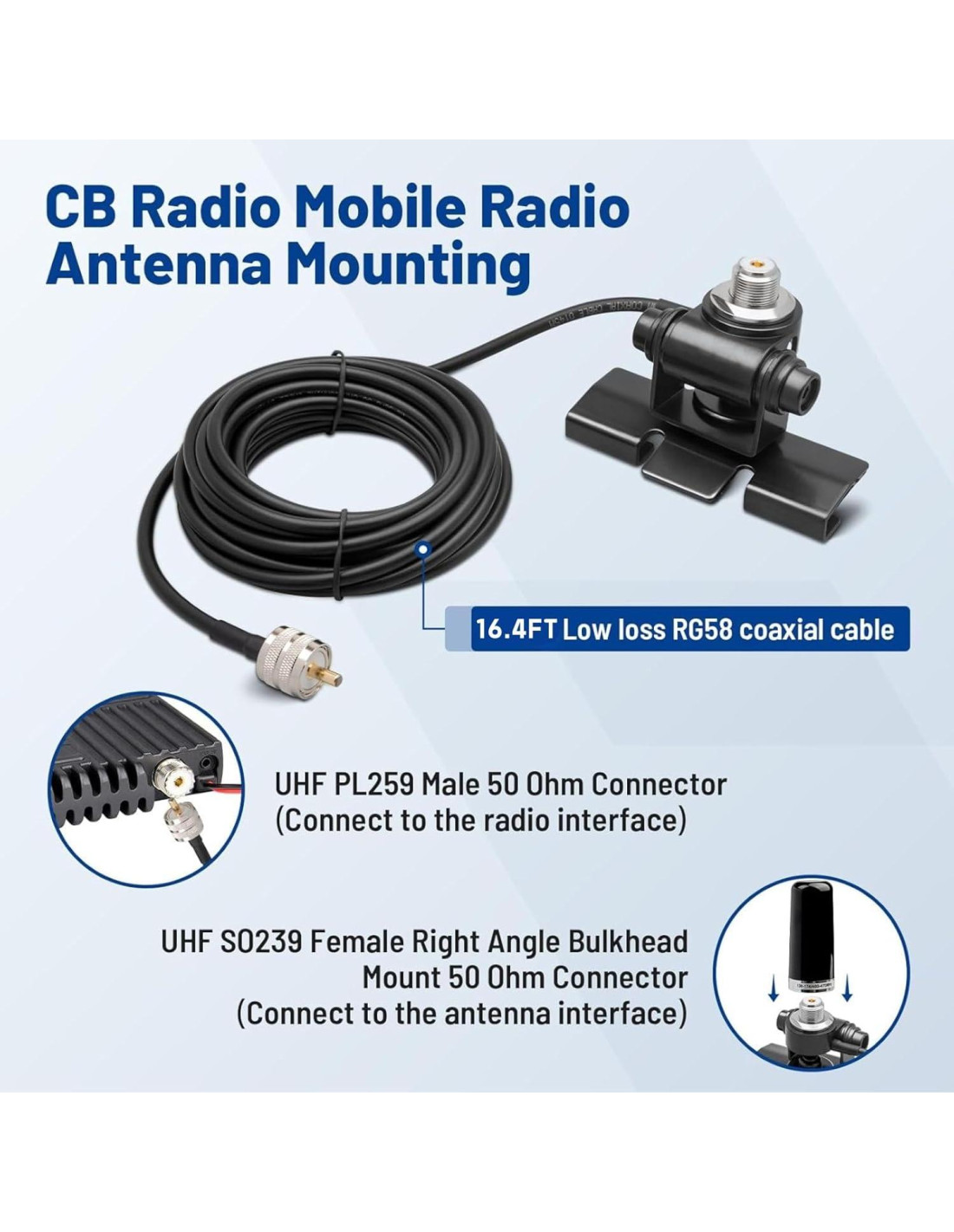 - Diseño de Montaje Lip: Nuestro Soporte de Antena de Maletero Lip Mount viene con coaxial diseñado; El soporte es ajustable para compensar el ángulo del maletero, hasta 360 grados para adaptarse incluso al espacio más ajustado entre el maletero y el guardabarros