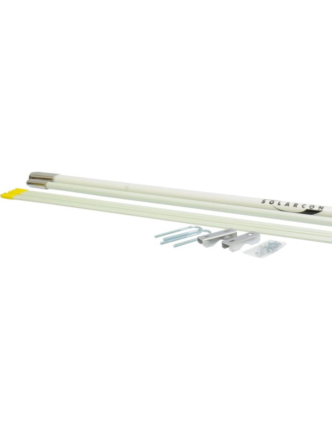 Solarcon A-99CK es la antena de fibra de vidrio de mayor ganancia en el mercado, e incluye un kit de plano de tierra. Esta antena de alta potencia maneja 2000 vatios de potencia, y está aislada hasta 14,500 voltios. Puede ser utilizada para exportación, comercial y radioaficionados de 10 metros. Y con la placa de montaje de alta resistencia, esta antena de estación base puede soportar mayores cargas de viento. La antena de 1/2 onda con ganancia de 3.2 dBI, ajuste de SWR y ancho de banda amplio cubre muy por encima y por debajo de los canales CB tradicionales.