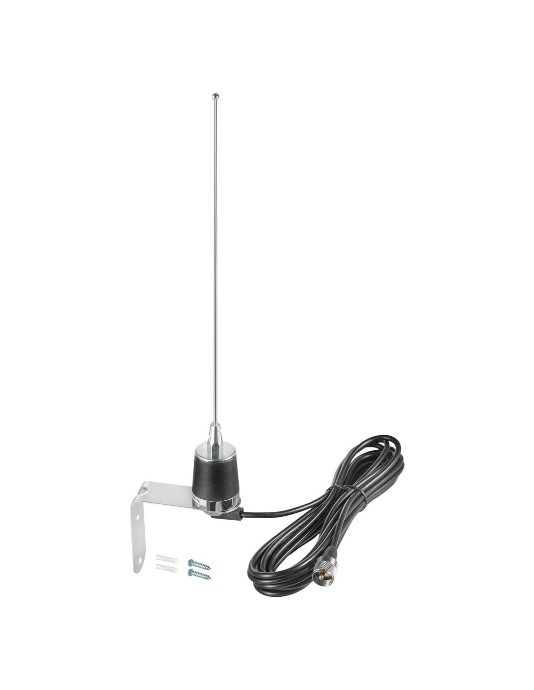 - Frecuencia de la antena: 136-174/400-470Mhz; Potencia máxima de entrada - vatios: 100Watt; Ganancia: 2.15dBi; VSWR: Menos de 1.5; Longitud de la antena: 43.9 cm (17.3 pulgadas), Longitud del cable: 5 metros (16.5 pies) Cable RG58; Conector de extremo de cable: Conector macho UHF PL259; Conector de antena: NMO;