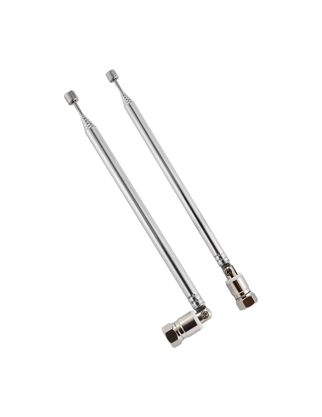 Especificaciones del Producto Nombre del Producto: Kit de Antena de Radio Portátil DAB FM 75 Ohm Conector Tipo F Macho, Antena de Radio DAB 7 Secciones. Longitud Total de la Antena: 165mm Longitud Total Extendida: 755mm Diámetro de la Antena: Aproximadamente 7mm Color: Tono Plateado. Sección: 7 Secciones. Pie de Doblado: 28mm. Lista de Conectores del Kit: Conector Tipo F Macho + Adaptador Conector Tipo F Hembra a Conector Hembra TV PAL + Adaptador Conector Tipo F Hembra a Conector Macho TV (3.5 mm macho) + Adaptador Conector Tipo F Hembra a Conector Hembra TV PAL. Paquete: 1 x Antena de Radio, 3 x Adaptadores de Conector. Neto: 51.5g.