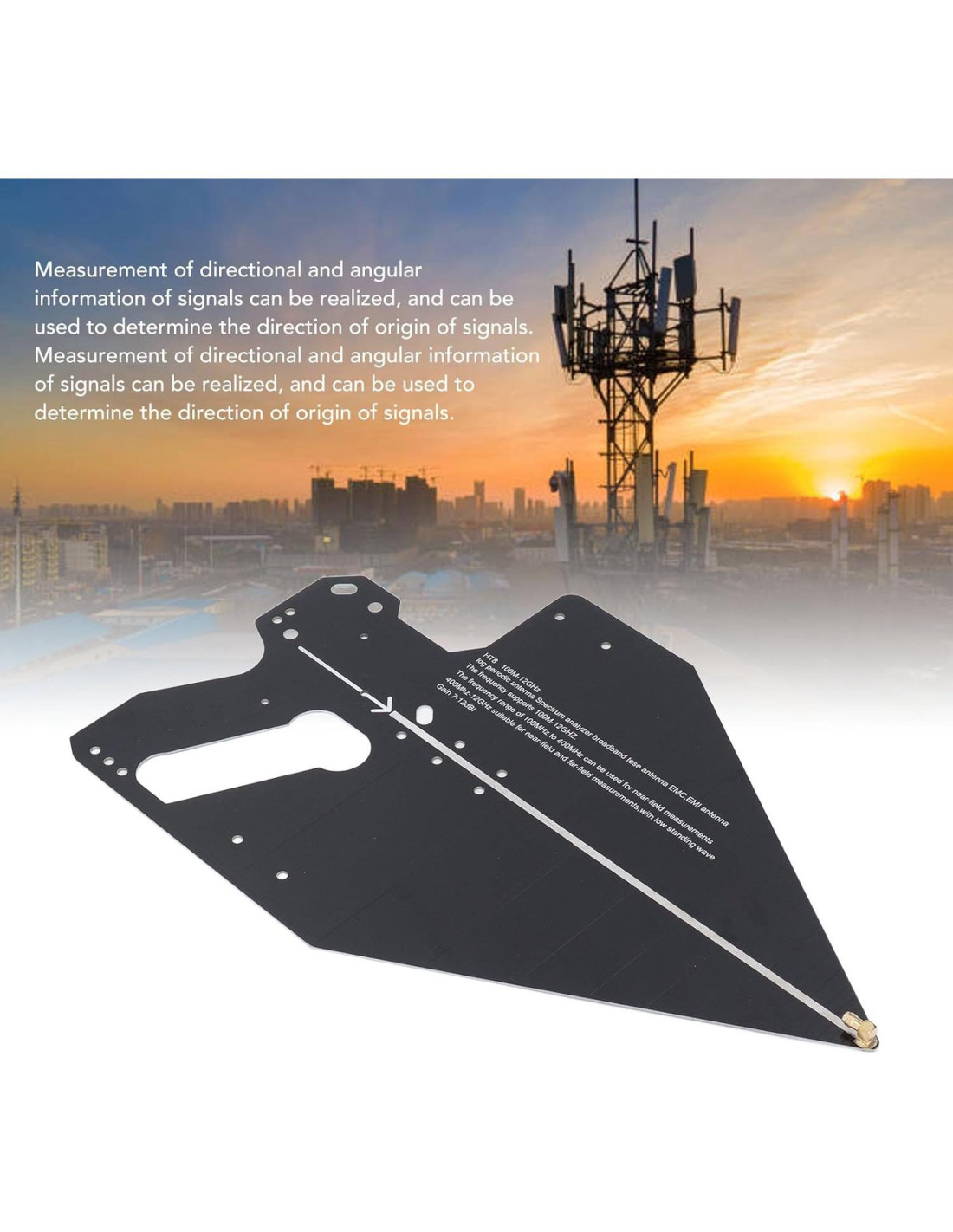 - [Cobertura de Ancho de Banda Amplio] La antena logarítmica periódica cubre un amplio ancho de banda de 0.1-12ghz, atendiendo diversas necesidades de medición mientras simplifica los componentes del sistema.