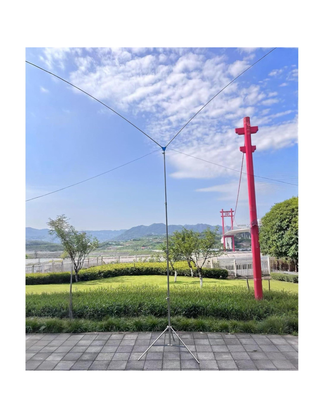 La GH-V5 es una antena portátil y plegable en forma de V que cubre 7-430 MHz, diseñada para operadores de radioaficionados, comunicadores de emergencia y escenarios de despliegue en campo. Su diseño simétrico en V invertida con elementos telescópicos y de alambre ofrece un amplio soporte de frecuencia en las bandas HF, VHF y UHF. Probada en condiciones de laboratorio, la GH-V5 logra un SWR <1.5 en las principales bandas HF (7.0-50.3 MHz) sin necesidad de un sintonizador externo. La transmisión y recepción a 145 MHz y 438 MHz también fueron verificadas con calidad de señal clara y sin distorsión direccional, lo que la hace utilizable en todas las bandas soportadas cuando se configura correctamente. La instalación es sencilla: la antena funciona eficientemente a una altura de solo 13 pies (4 m) o más. Un balun impermeable IP68 asegura un funcionamiento estable bajo condiciones exteriores típicas, y el sistema soporta hasta 400 W de potencia de transmisión, adecuado para la mayoría de los casos de uso en campo y móvil. Lo que incluye: Cuerpo de antena tipo V x1; Varillas telescópicas de 5.6 m x2; Elementos osciladores de alambre de 10 m x2; Bolsa de transporte x1; Manual de instrucciones x1