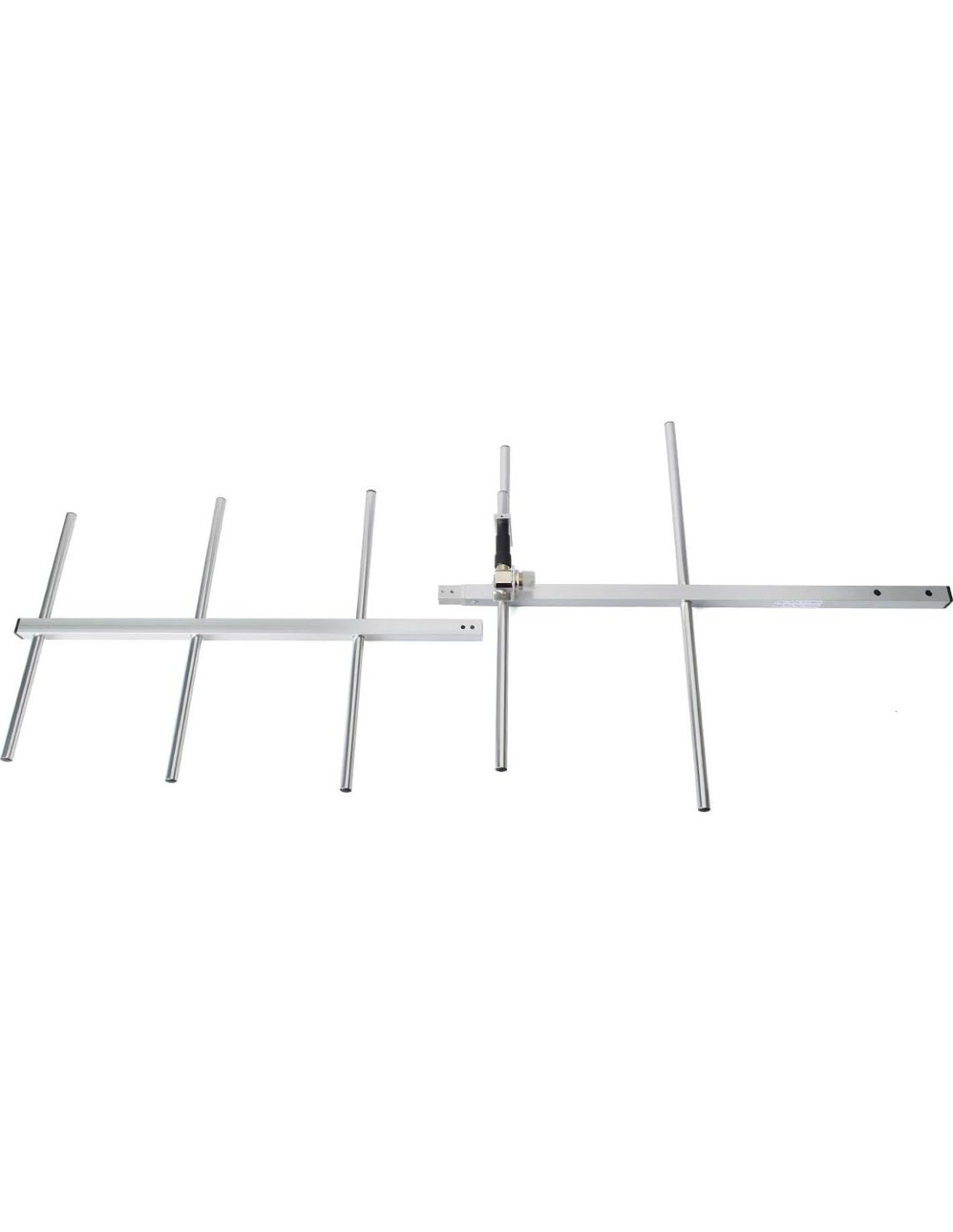 - Antena YAGI UHF 400-470MHz, señal de 9 dBi con hasta 100W de potencia; con conector hembra UHF;