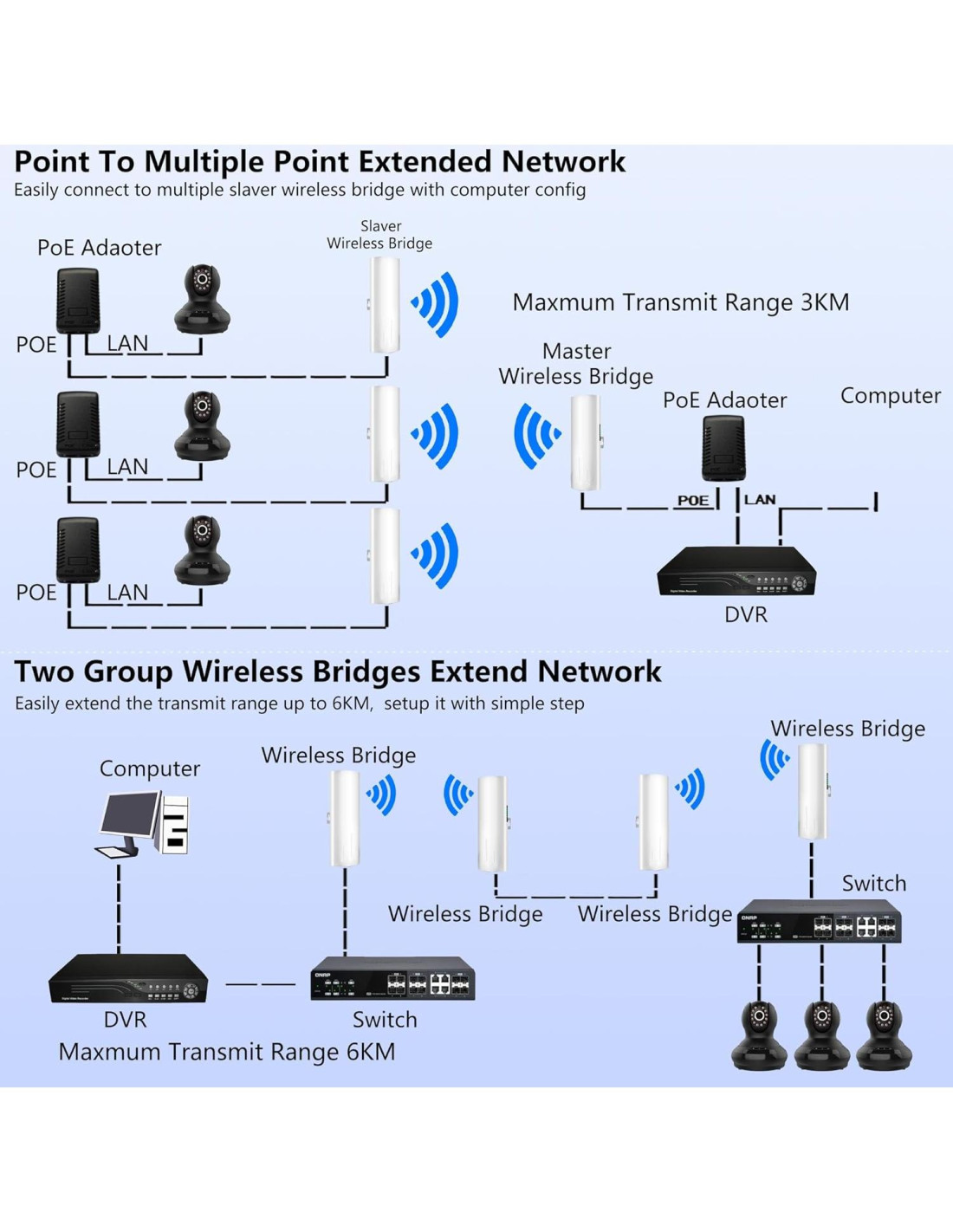 - [Plug and Play]: La función Plug and Play del Puente Inalámbrico de Punto a Punto revoluciona la instalación con su diseño intuitivo, atendiendo a usuarios de todos los niveles de habilidad. Al eliminar las complejidades de las configuraciones tradicionales, asegura una implementación sin esfuerzo sin la necesidad de habilidades técnicas especializadas. Su capacidad de integración sin problemas en redes existentes mejora aún más la conveniencia, permitiendo una rápida expansión o mejora de la conectividad sin interrupciones.