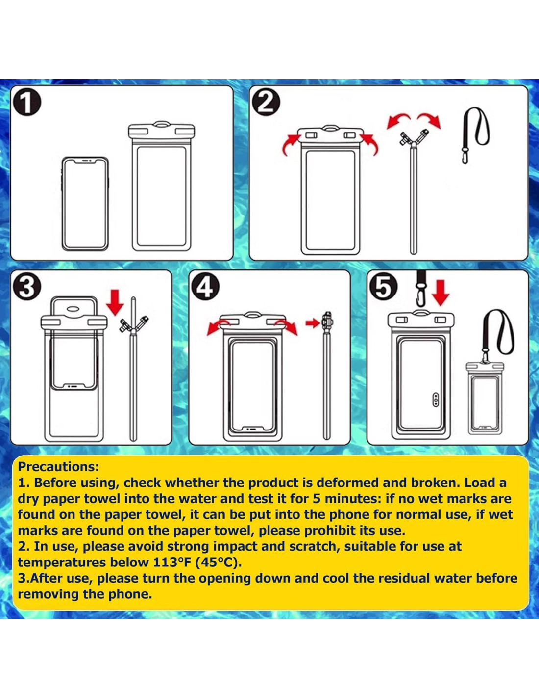 - Contenido de la caja: Funda de Teléfono Impermeable * 4PCS, Cordón * 4PCS