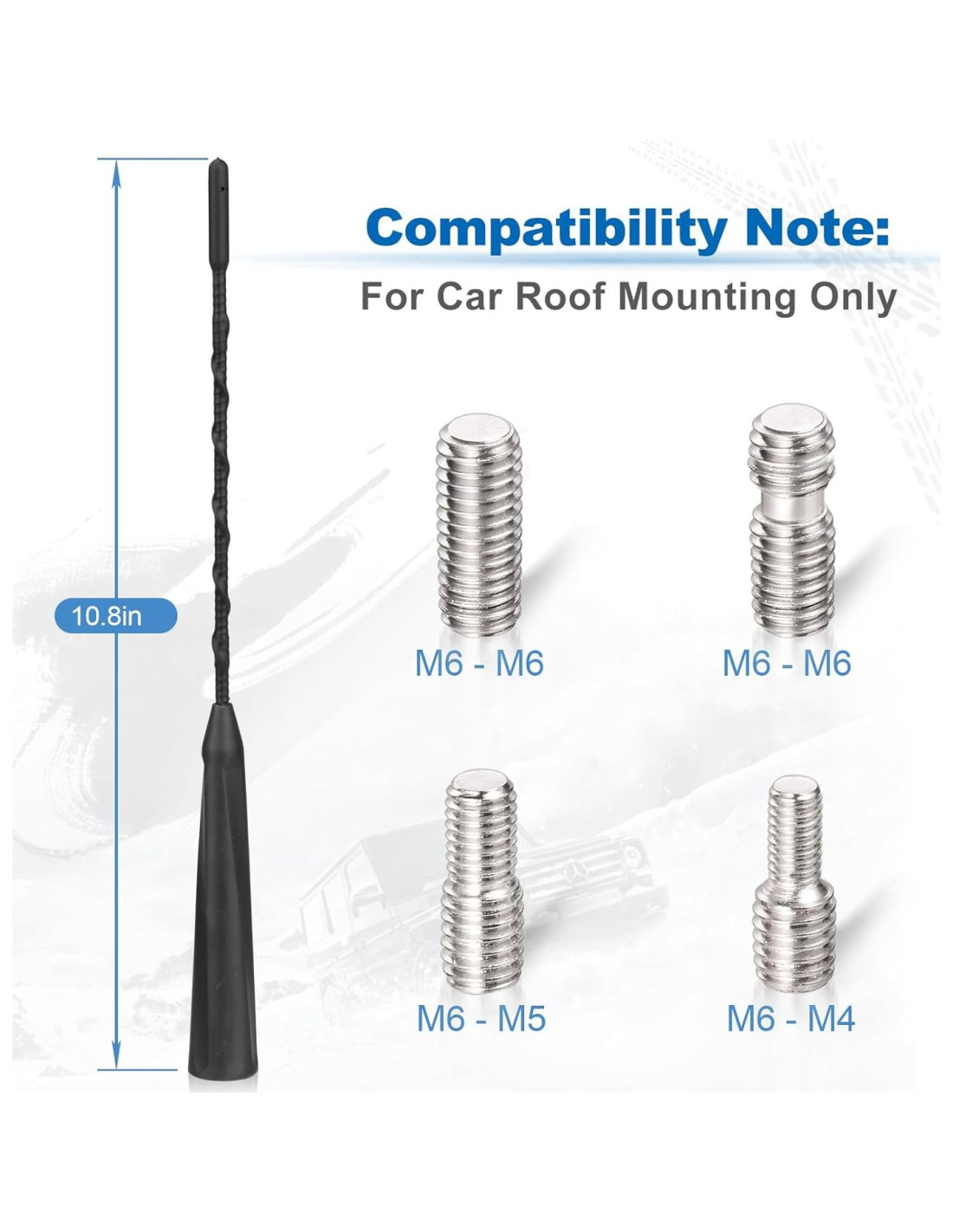 - Reemplazo de Mastil de Antena: Viene con 4 adaptadores de tornillo para compatibilidad con la mayoría de las instalaciones de vehículos montados en el techo, incluyendo coches, camiones, tractores, hatchbacks, SUVs y casas rodantes