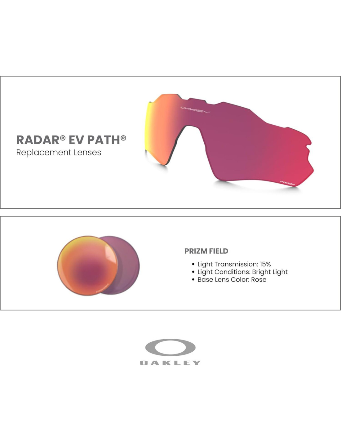 - Tecnología de Lentes Oakley Prizm - Mejora tus gafas Radar EV Path con lentes Oakley Prizm para una visión más nítida y un rendimiento audaz. Experimenta claridad inigualable, resistencia al impacto y 100% de protección UV con ÓPTICA DE ALTA DEFINICIÓN (HDO), diseñada para cualquier aventura. Código de color: 000019.