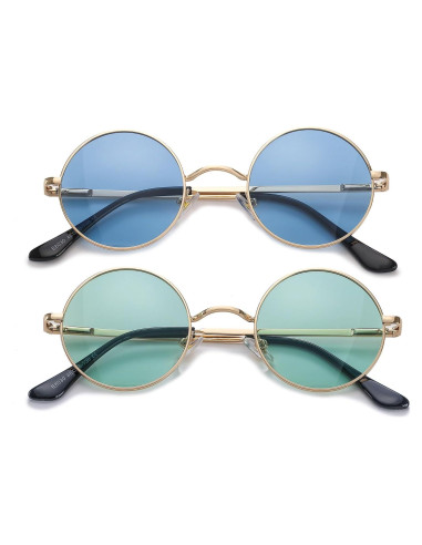 - ESTILO HIPPIE VINTAGE - Las gafas hippies redondas son la combinación perfecta de clásico y moda para cada creador de tendencias, combinando el estilo retro de los años 80 y 90 con calidad y comodidad superiores. Las gafas de sol en forma de círculo son perfectas para el uso diario o como accesorio para cumpleaños, fiestas navideñas, festivales de música y disfraces de Halloween.