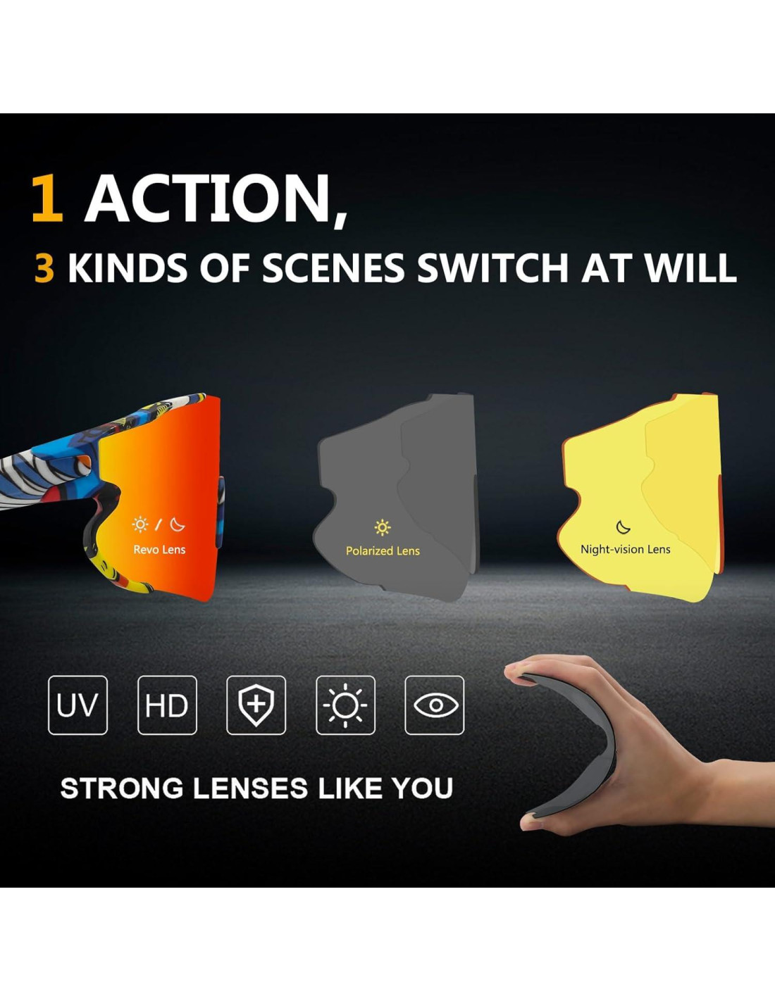 - 3 LENTES INTERCAMBIABLES - Gafas de béisbol OULAIQI con 3 lentes intercambiables. Recubrimiento de protección UV400, bloquea los dañinos rayos UVA y UVB, protege los ojos perfectamente. El primer lente gris es polarizado contra la fuerte luz solar, el segundo es amarillo y adecuado para actividades nocturnas, el tercero es ideal para conducir y otras actividades.