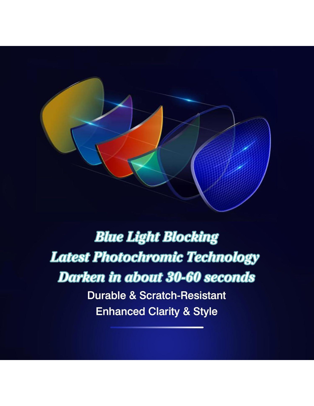 - Color de Lente: Amarillo fotocromático con bloqueo de luz azul