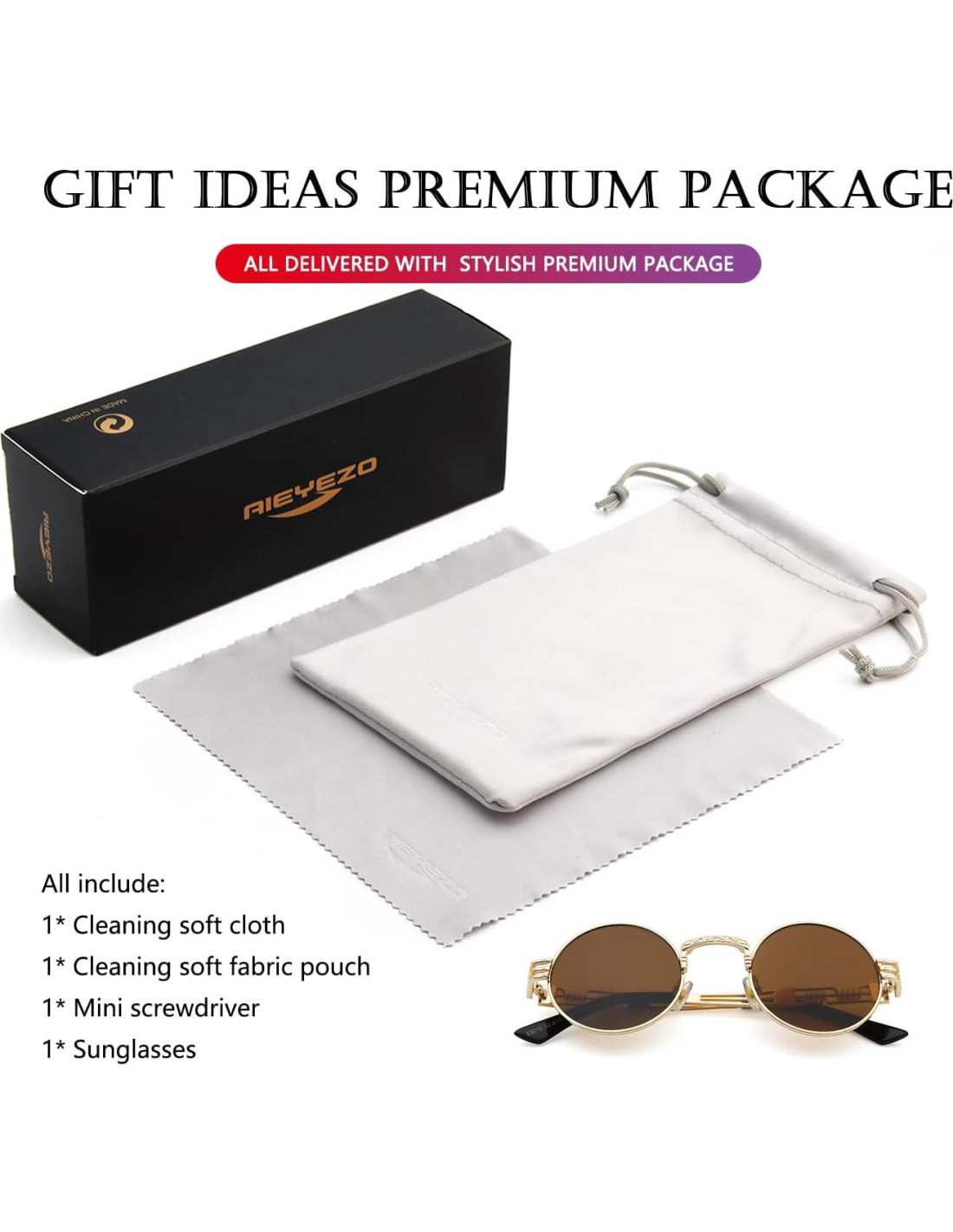 Gafas de sol redondas steampunk AIEYEZO con marco de metal 100% bloqueo UV