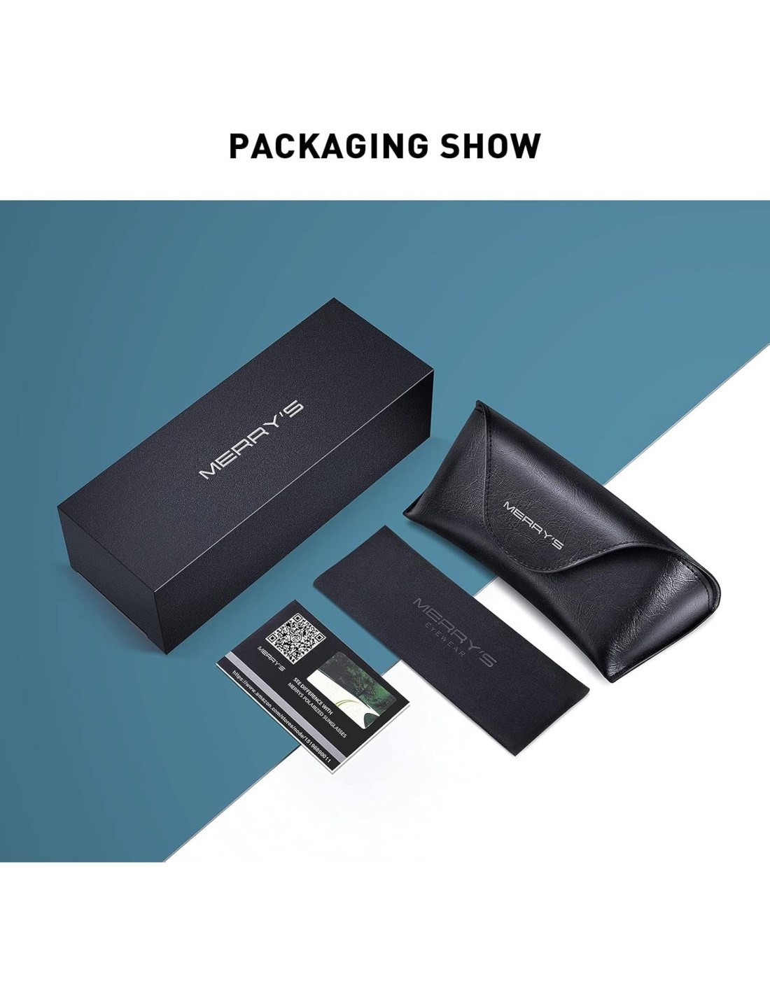 MERRY'S ofrece estilos de gafas de moda con cualidades y diseños que superan a productos similares de la corriente principal. Nuestra experiencia en el mercado proviene de años de experiencia práctica en la industria de las gafas, dedicación al desarrollo y mejora constante y mantenimiento de relaciones familiares con fabricantes líderes en la industria. Las gafas de sol MERRY'S cuidarán bien de tu visión protegiendo tus ojos de los dañinos rayos del sol. La tienda oficial de MERRY'S proporciona las mejores gafas de sol y servicio al cliente en Amazon. INCLUYE 1*Estuche para gafas 1*Paño de limpieza suave 1*Bolsa de tela suave para gafas de limpieza 1*Manual del usuario 1*Embalaje de caja de regalo