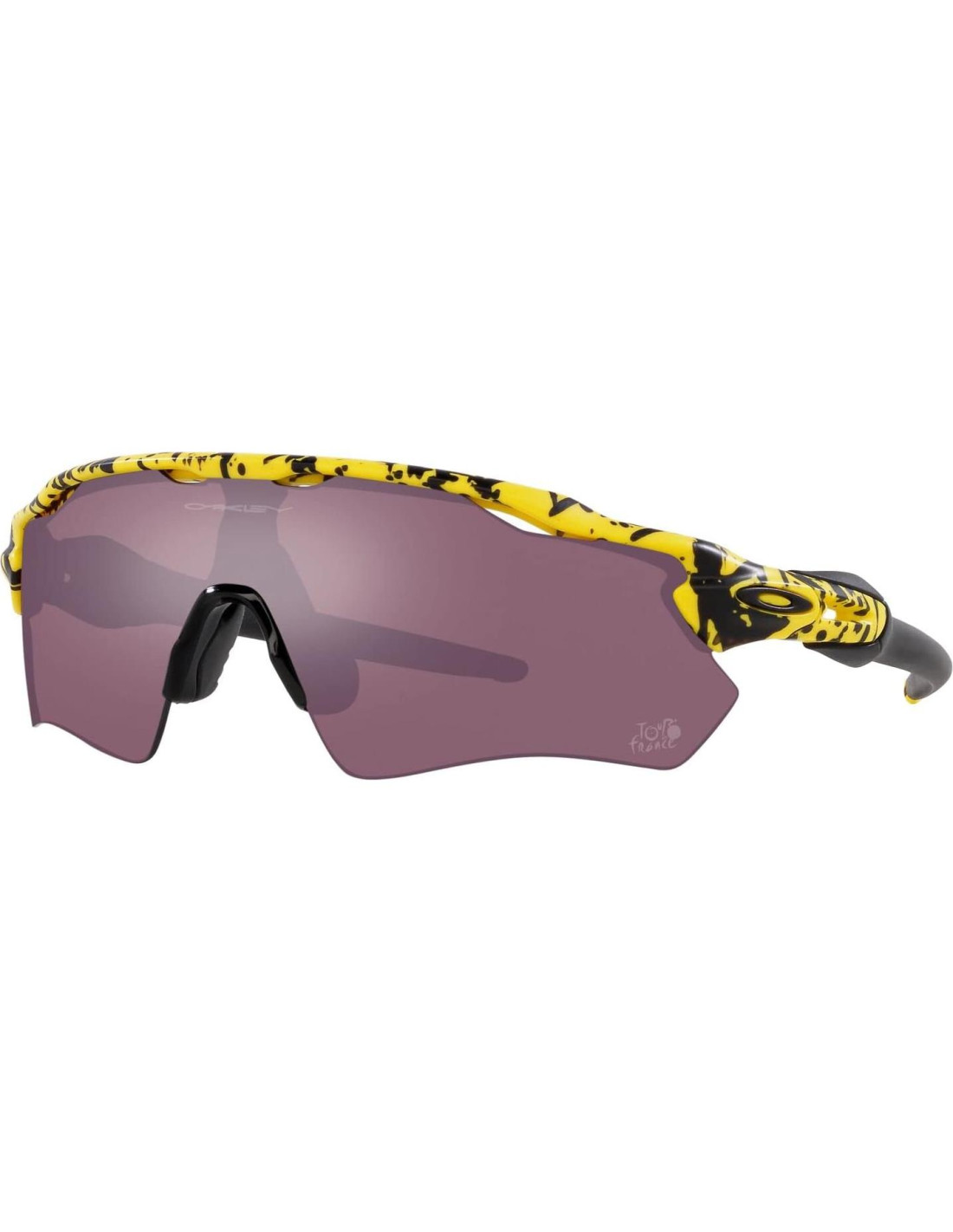 - CARACTERÍSTICAS DEL MARCO: Las gafas de sol OO9208 Radar EV Path tienen un amplio campo de visión que facilita la verificación de tus puntos ciegos. Presentan un marco rectangular geométrico de color amarillo salpicado y lentes Prizm road black.