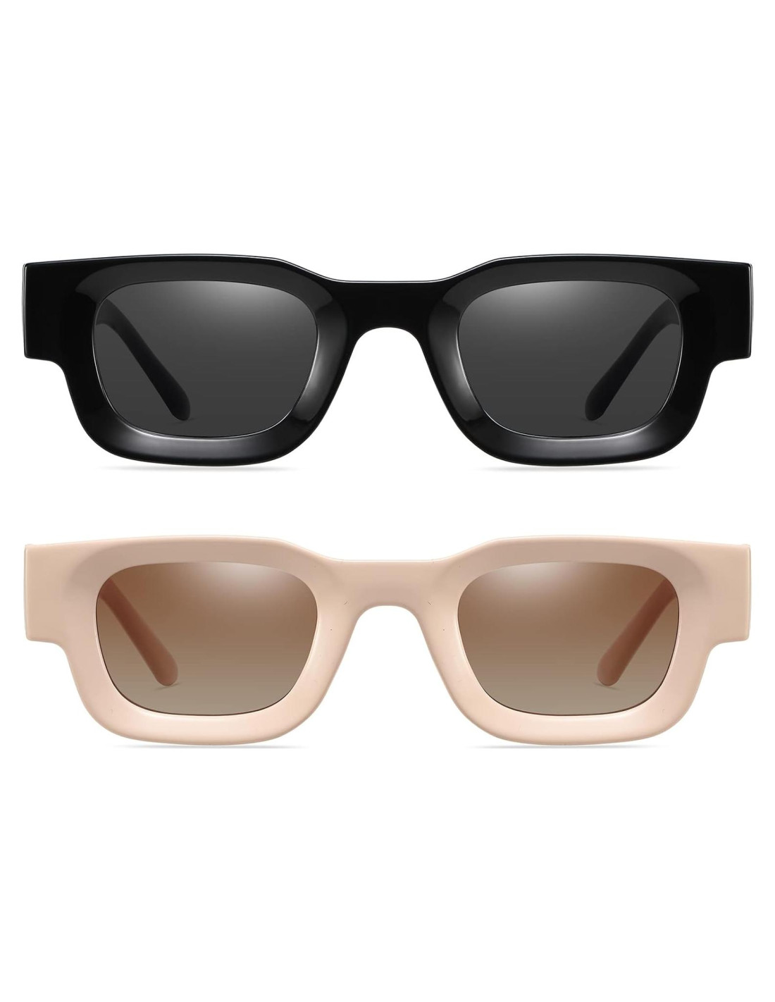 - DISEÑO DE MONTURA CUADRADA - Gafas de sol rectangulares vintage con un elegante diseño cóncavo tridimensional, que le da a estas gafas un estilo retro y elegante, con bisagra de metal reforzada, almohadillas nasales integrales y patillas súper cómodas, lo que las hace más cómodas y duraderas al usarlas