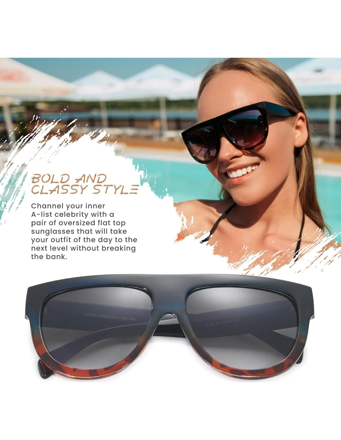 - MODA Y ELEGANCIA: Mantente a la moda con un par de gafas de sol de gran tamaño y diseño plano de LEICO FASHION para mujeres. Inspiradas en las últimas tendencias, nuestras elegantes gafas de sol de diseñador completarán cualquier atuendo y te ayudarán a hacer una declaración de moda.
