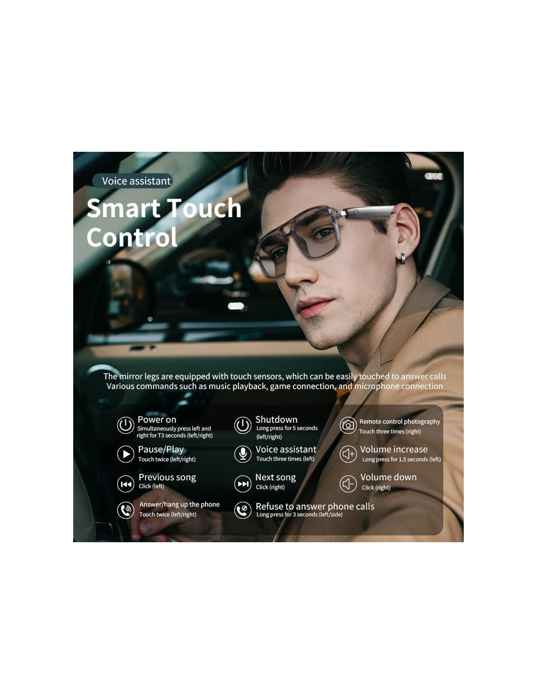- Experiencia de Control Conveniente: Soporta control táctil inteligente. Un ligero toque en la patilla puede lograr funciones como reproducir/pausar, responder/colgar llamadas y navegación por voz. También puedes activar el asistente de voz, como Siri, tocando suavemente para una operación manos libres.