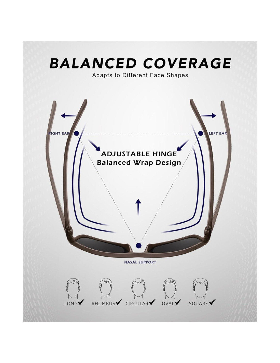 - Materiales de alta calidad: Fabricadas con materiales premium, las gafas de sol QALLY para hombres están diseñadas para ofrecer una durabilidad superior y resistencia a altas temperaturas. Las bisagras de resorte permiten que las gafas de sol polarizadas para hombres se adapten cómodamente a diversas formas de cara, asegurando que se mantengan en su lugar de manera segura durante cualquier actividad