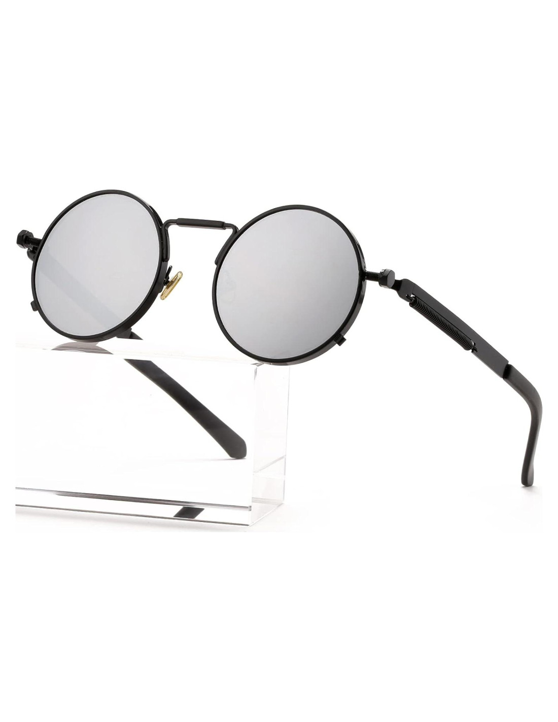 Gafas de sol redondas steampunk AIEYEZO con marco de metal gótico y lentes 100% bloqueadores de UV