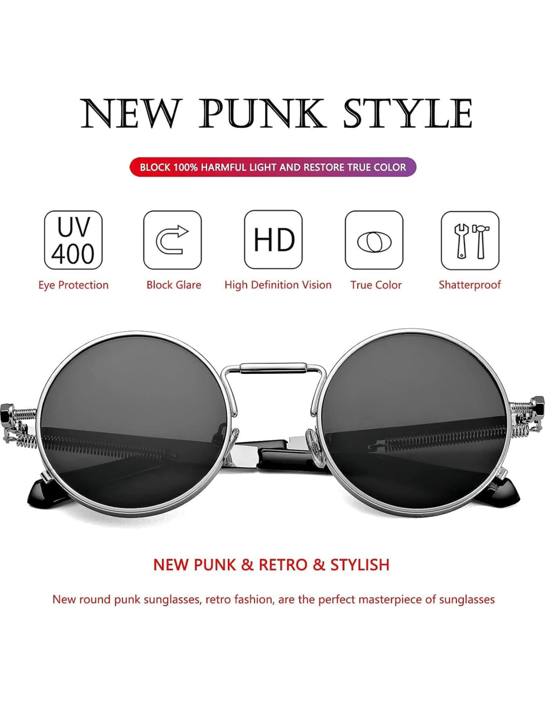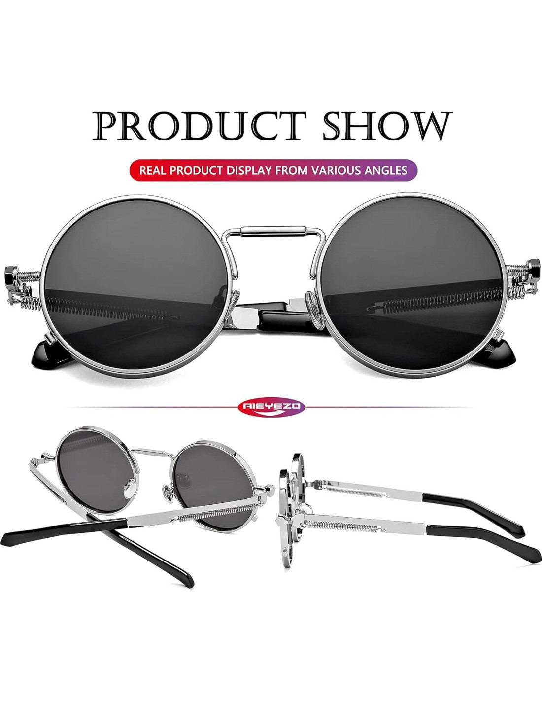 Gafas de sol redondas steampunk AIEYEZO con marco de metal gótico y lentes 100% bloqueadores de UV